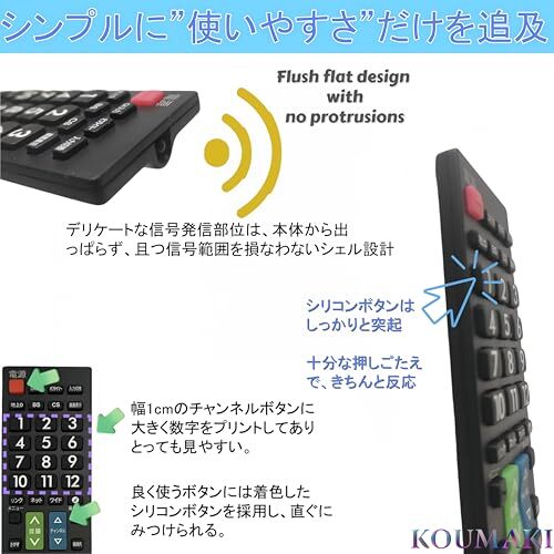 1. 完全な互換性: HT-E620-Bは、日立テレビとの完全な互換性があります。全ての基本機能(チャンネル切り替え、音量調整、入力切り替えなど)をサポートしています。純正品と同じ操作感を提供します。