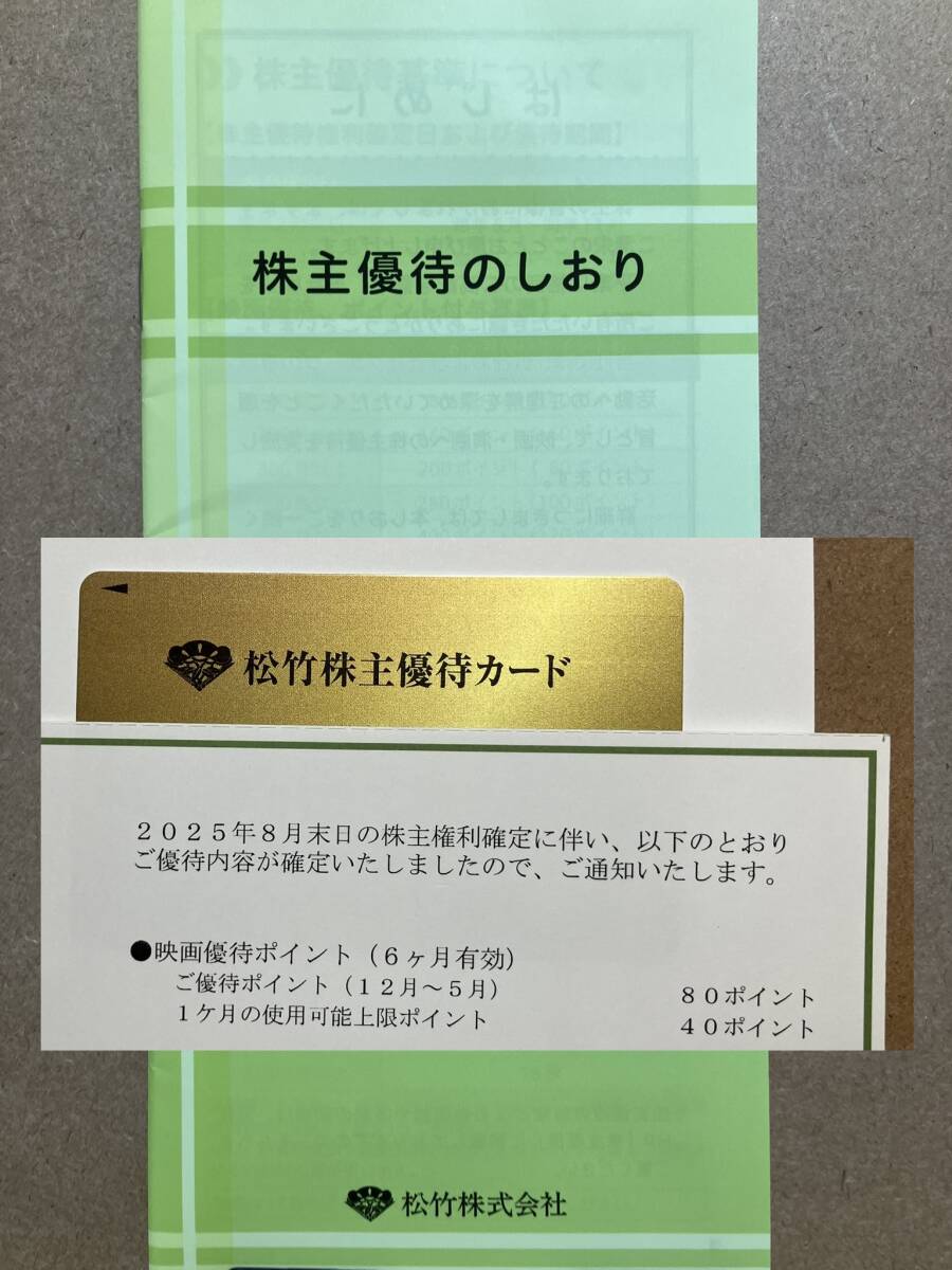 松竹株主優待カード 男性名義80p(優待のしおり付き)です。(1か月の使用上限は40pです。)