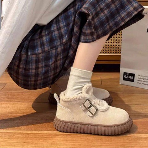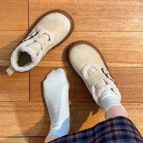 保温性のあるふわふわの裏ボア ムートン風ショートブーツ
