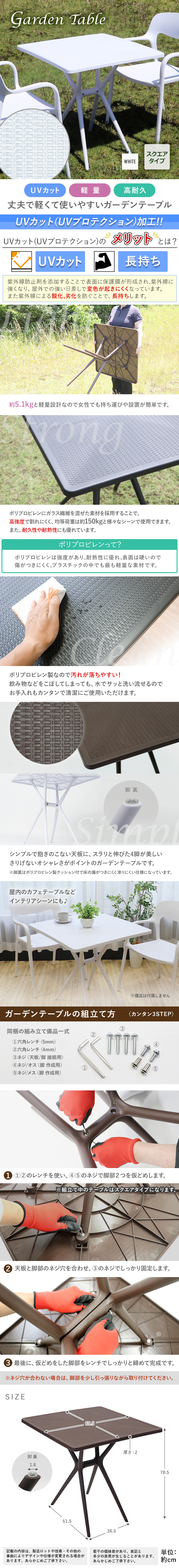 | 商品名 | 送料無料 プラスチックテーブル ガーデンテーブル UVカット スクエアテーブル 軽量 頑丈 コンパクトサイズ シンプルデザイン お手入れカンタン 簡単組立 インテリア ガーデン テーブル ポリプロピレン PP プラスチック gtabled |