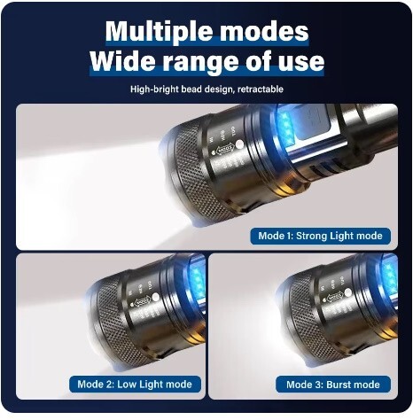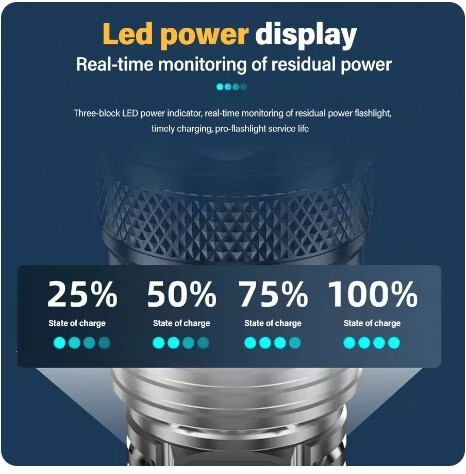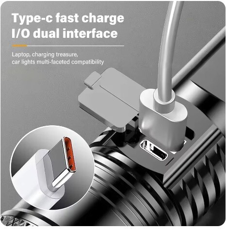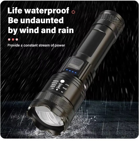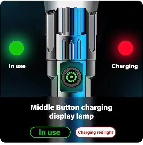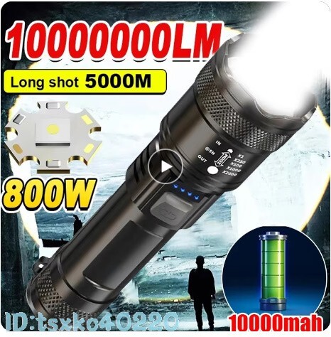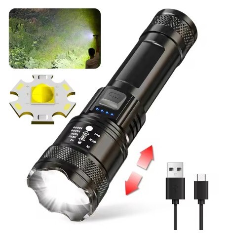 高強力 LED 懐中電灯 2000LM タクティカルトーチ ディスプレイライト付き USB 充電 キャンプ 釣り 緊急ズームランタン