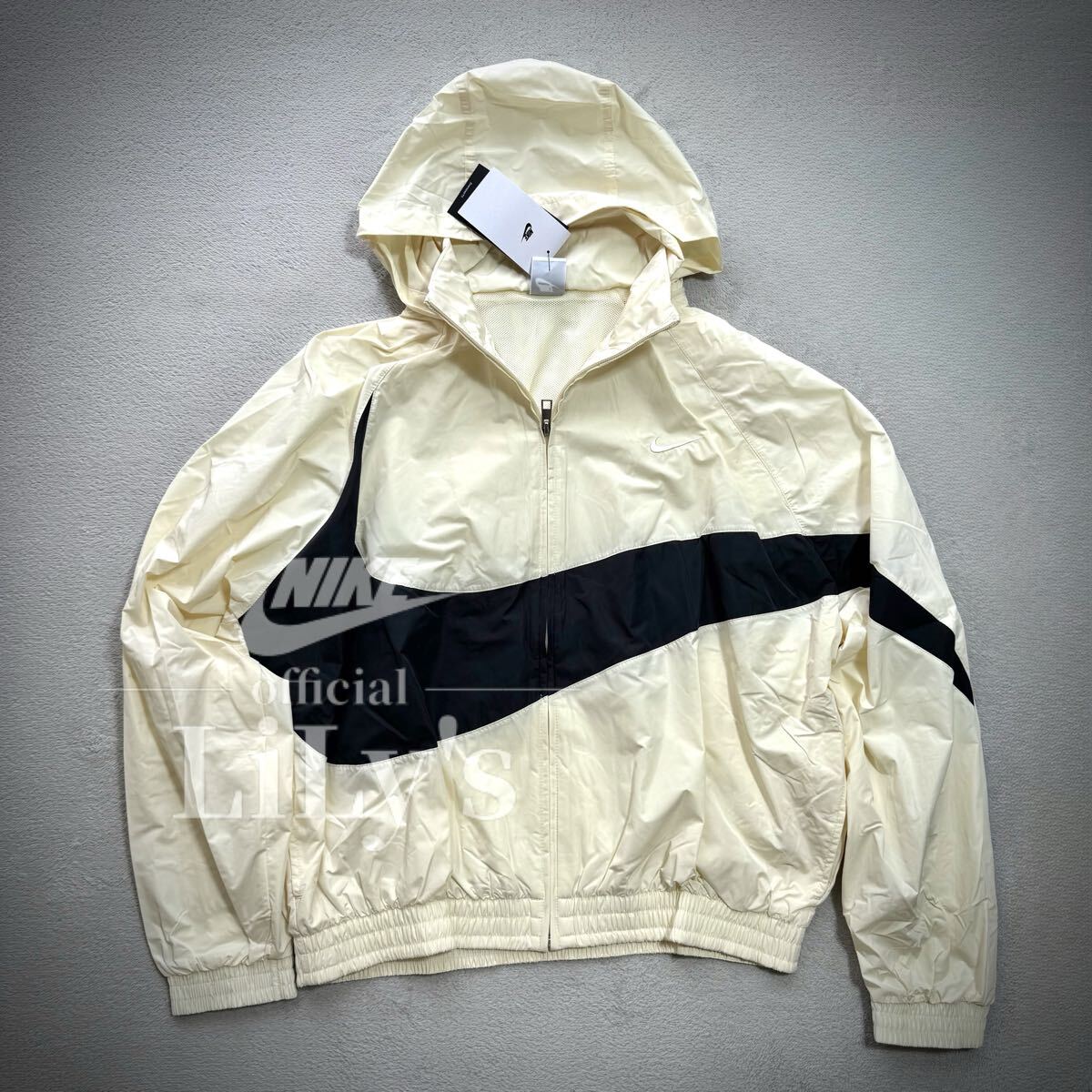 スウッシュで、さらにスタイリッシュに。ウーブン素材を使用したフルジップジャケットは、悪天候をブロックする撥水性の高い万能なアウターレイヤー。風雨の日に取り出せる、隠しフードが付いています。