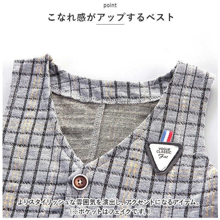 | 商品説明 | ・・コーデに悩むことなく、おしゃれにキマる!キッズ用(男の子)フォーマルスーツが新登場。 ・【うれしい3点セット】 ・長袖シャツ、ベスト、ロングパンツの3点セット。大人顔負けのスタイリングが完成☆ ・【ベーシックな長袖シャツ】 ・フロントボタン付きの、スタンダードなカタチに仕立てたシャツ。襟元に縫い付けられた蝶ネクタイがポイント。 ・【こなれ感がアップするベスト】 ・よりスタイリッシュな雰囲気を演出し、アクセントになるアイテム。(※ポケットはフェイクです。) ・【ストレスなく履けるロングパンツ】 ・締めつけ感の少ないウエストゴム仕様。着替えがしやすく、自分サイズにフィット!左右にポケット付き。 ・【色々なシーンで活躍】 ・ゆるっと余裕のあるシルエットで、トレンド感のある仕上がり。かっちりしすぎずデイリー使いからフォーマルシーンまで!幅広く活躍☆ |