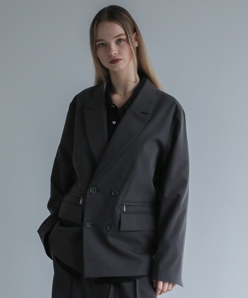 参考商品名:【ELLUV/エルヴ】ノーブルクオリティーTR ジップギミックダブルテーラードジャケット