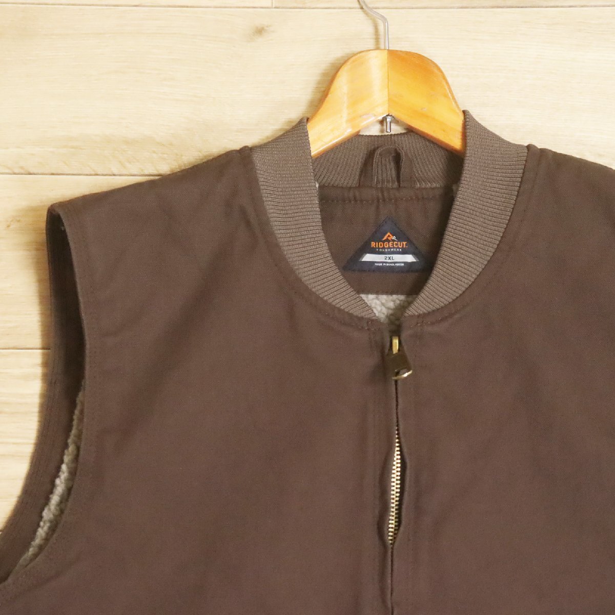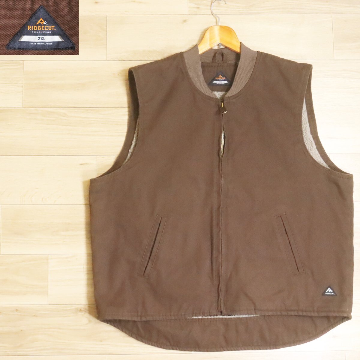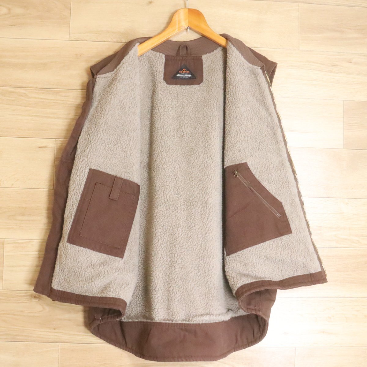 N13R/R6.6-2 アメリカ古着 RIDGECUT ダックベスト ワークベスト 裏ボア フルジップベスト ワークウェア 2XL メンズ ブラウン