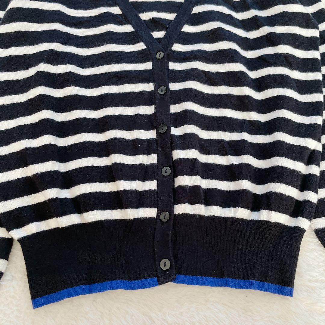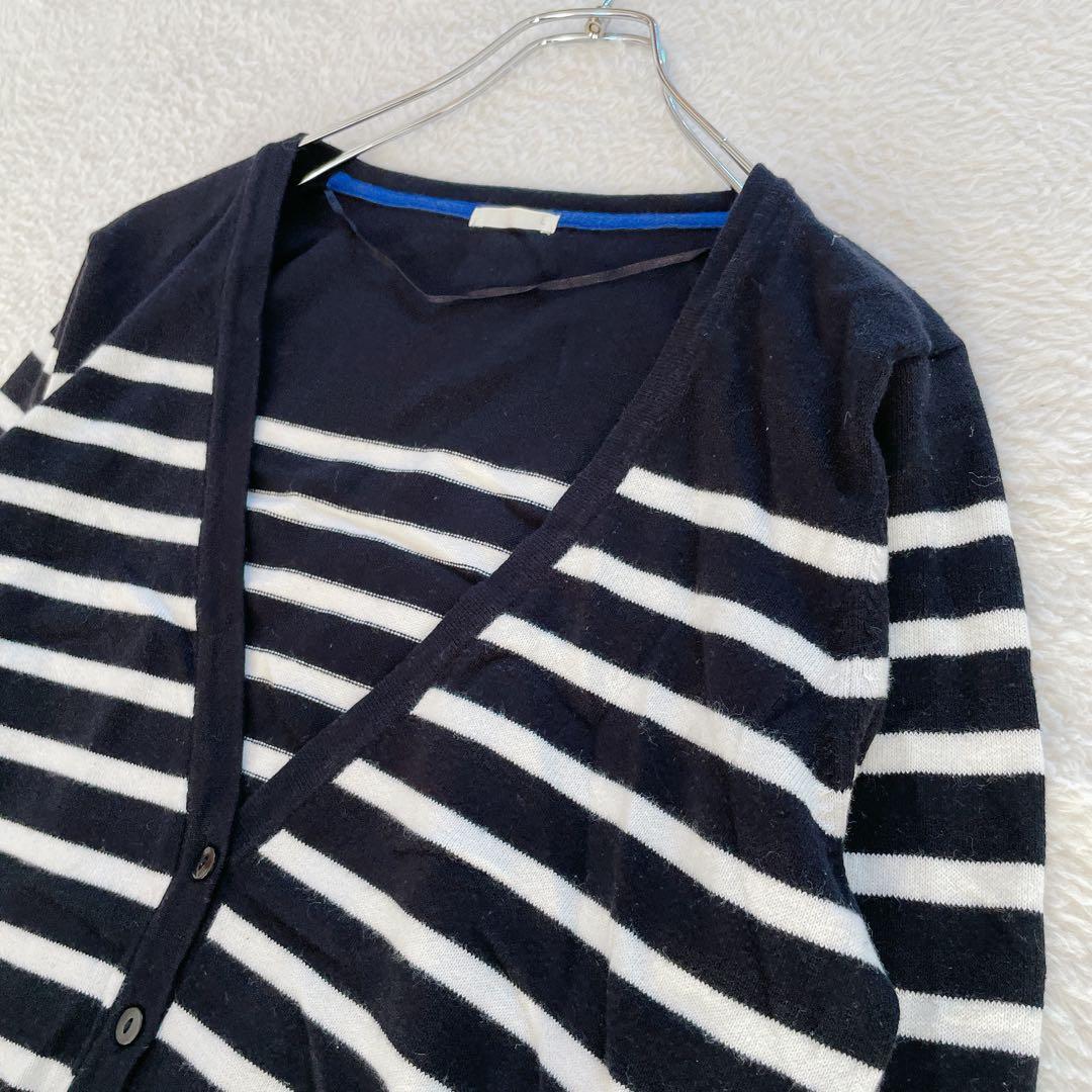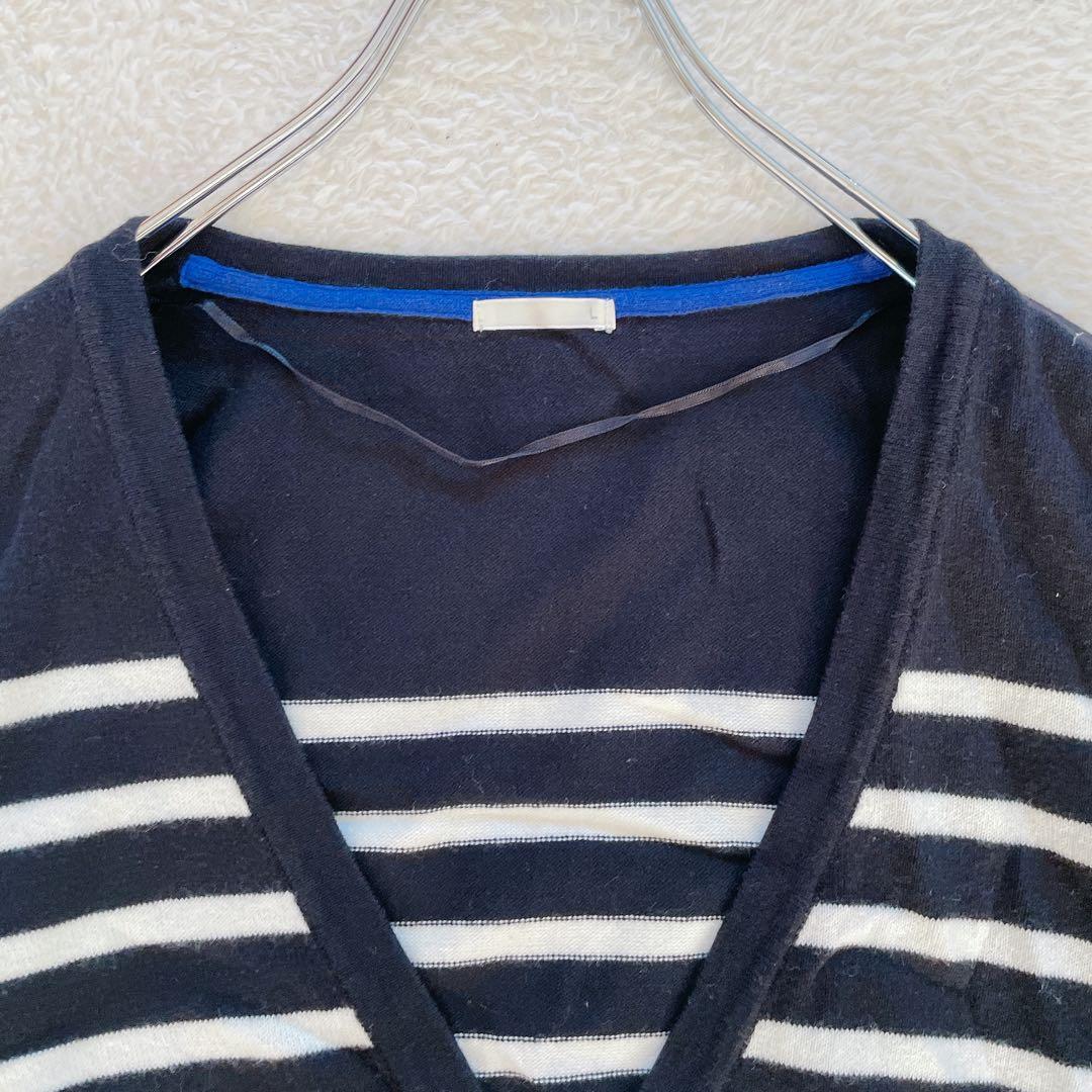 【ユニクロ】ボーダー カーディガン Lサイズ 黒白 青 Vネック 19F87B