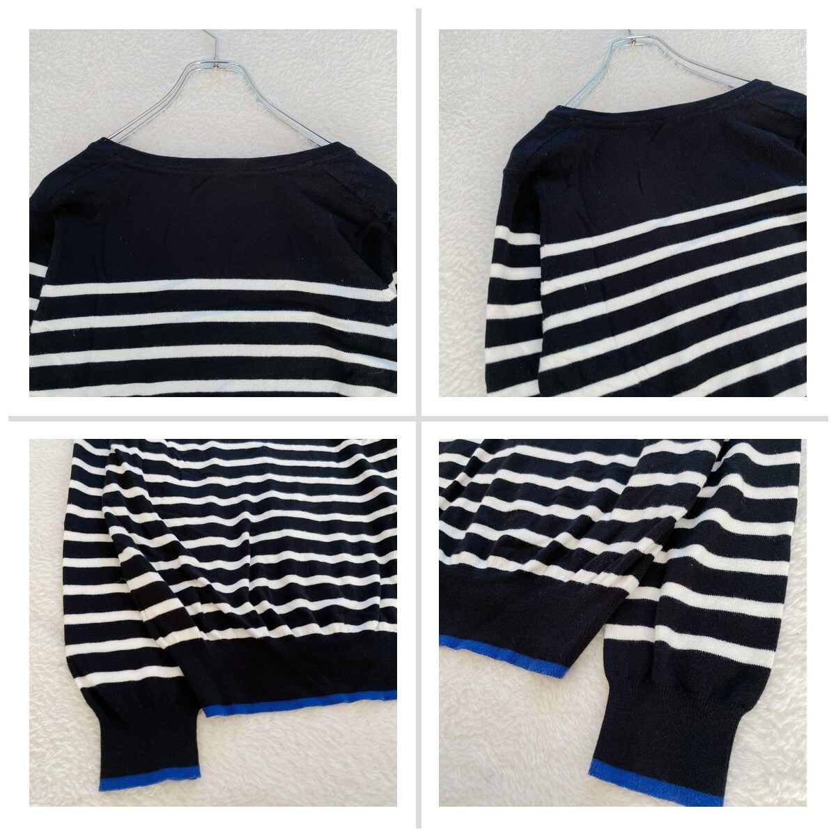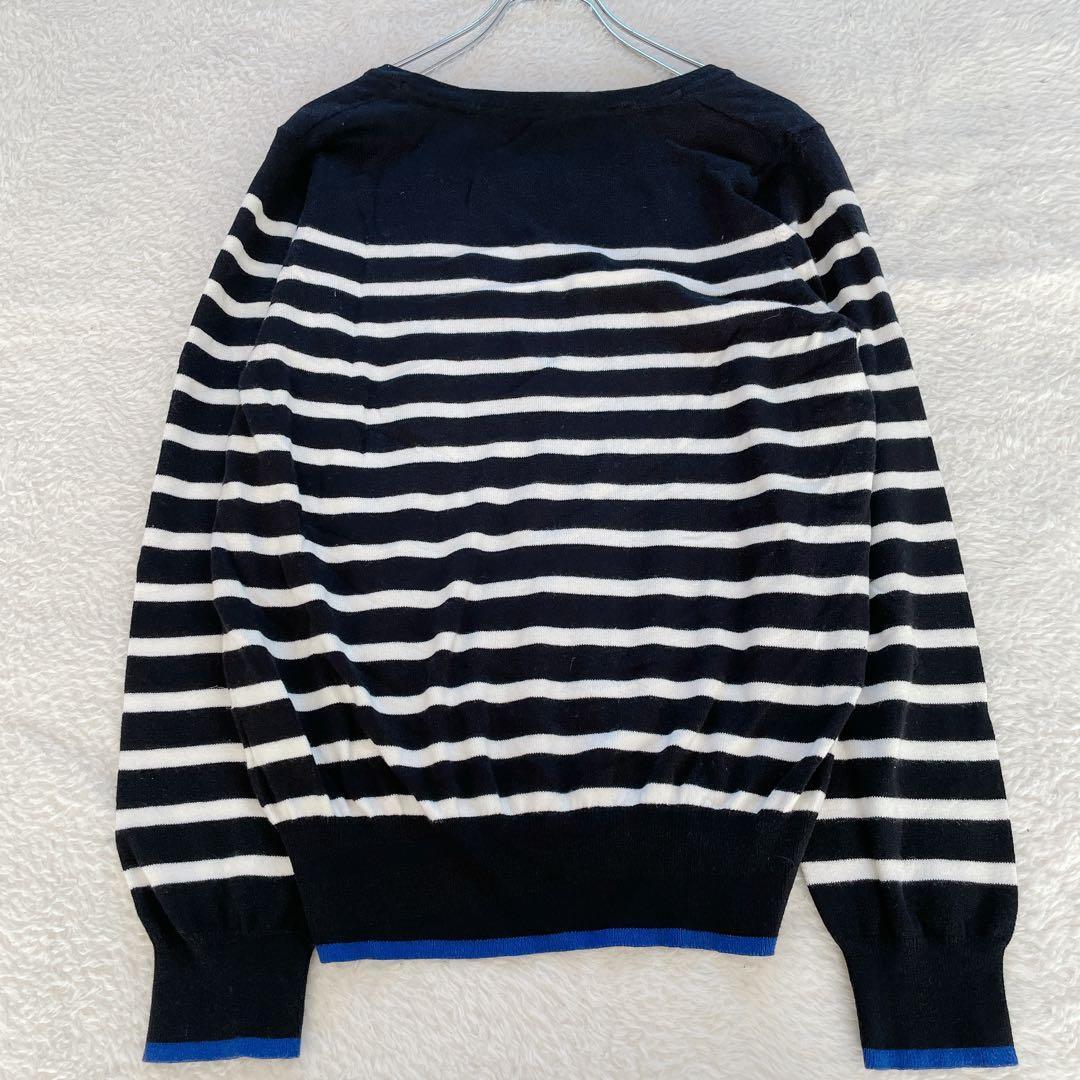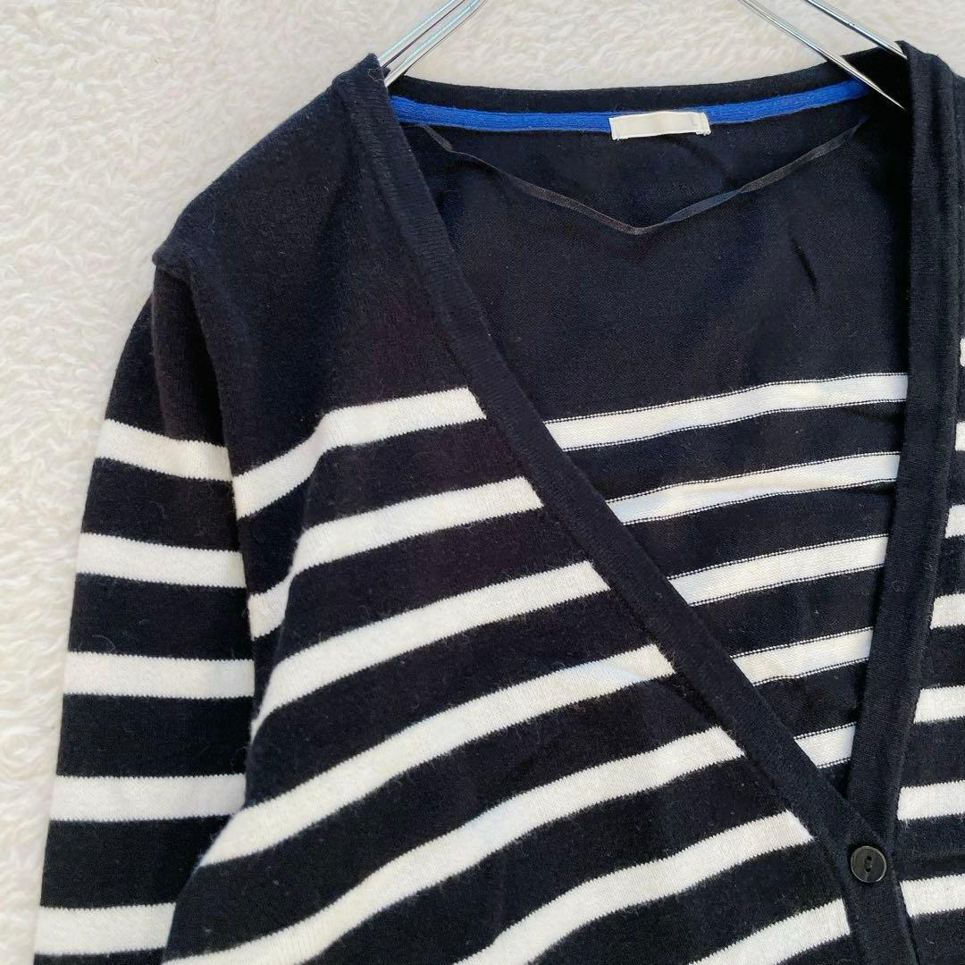 【ユニクロ】ボーダー カーディガン Lサイズ 黒白 青 Vネック 19F87B