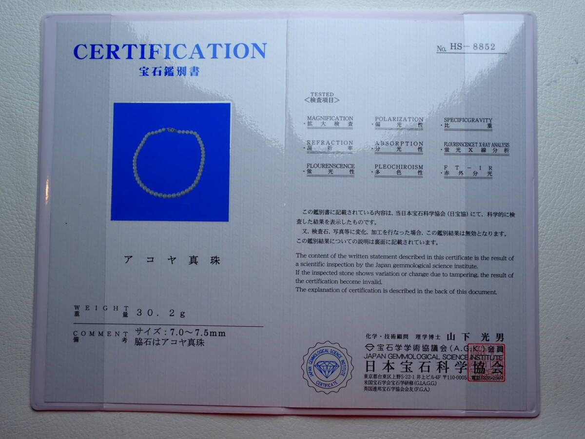 15●アコヤ真珠 ネックレス 7.0~7.5mm 30.2g 鑑別書付