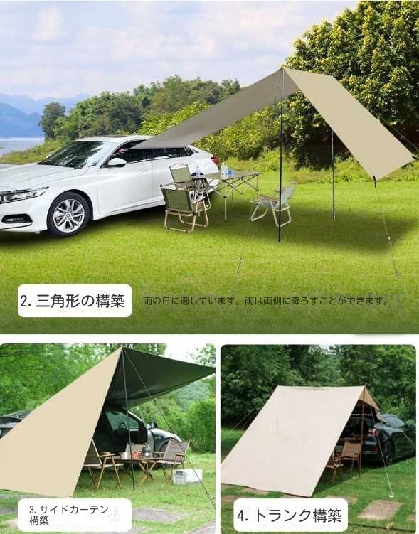 タープ テント 車用 汎用 カーサイドオーニング 取り付け ロール カーサイドタープ ルーフ 防水 日よけ キャンプ 車中泊 ドライブ(A150)