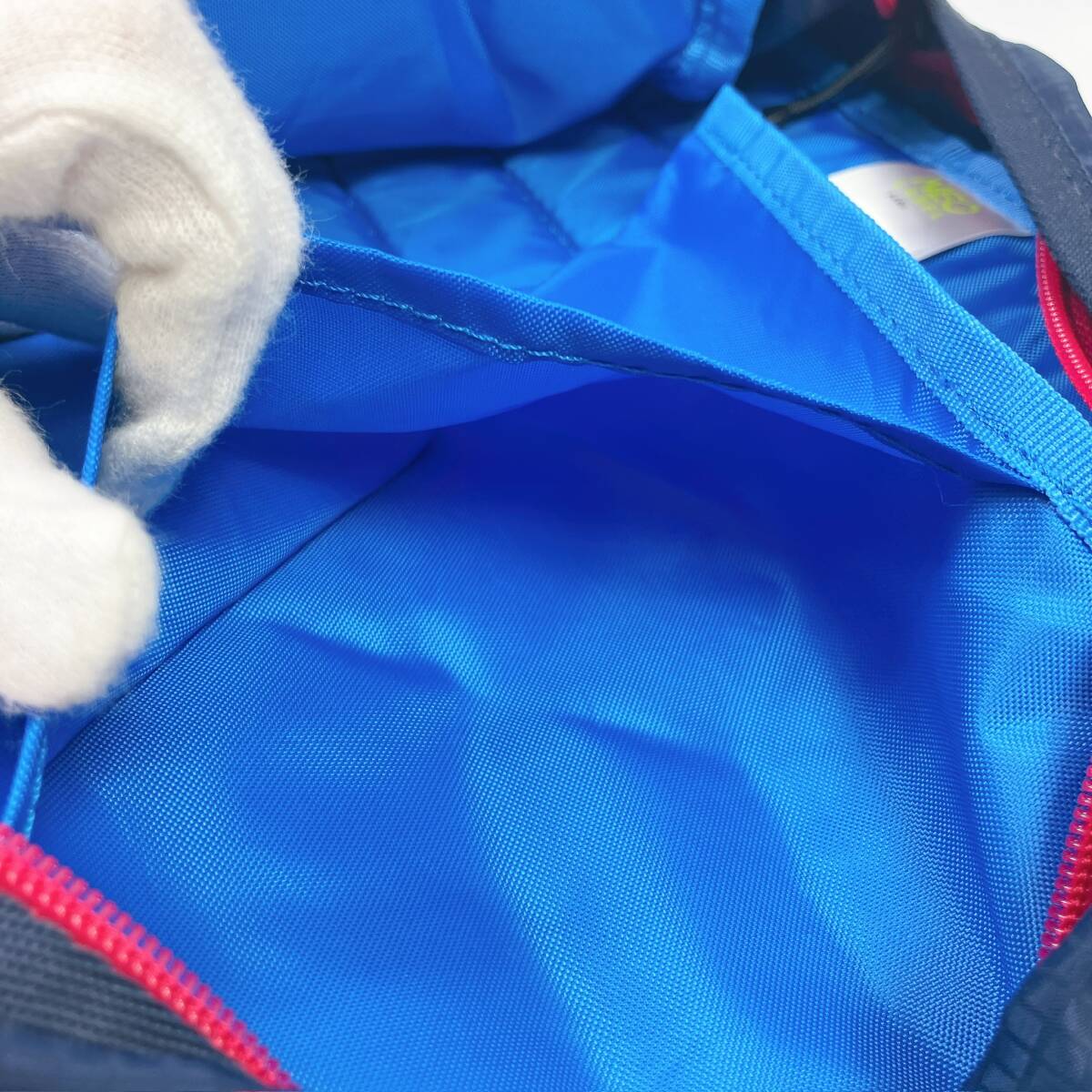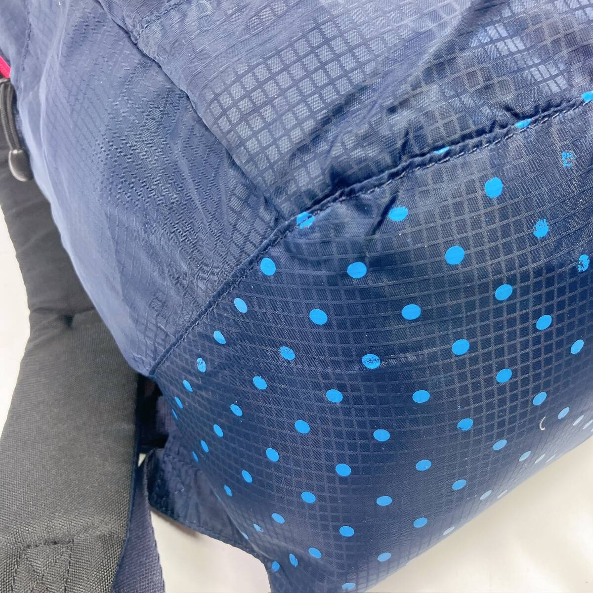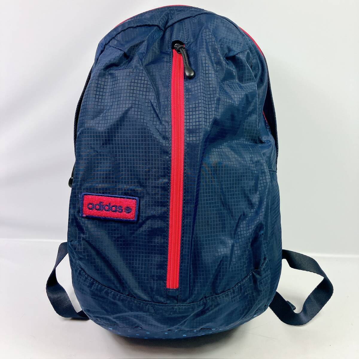 D2183◯ adidas アディダス リュックサック デイパック ナイロン レッド ネイビー 赤 紺 ファスナー ポケット ブラック ドット柄
