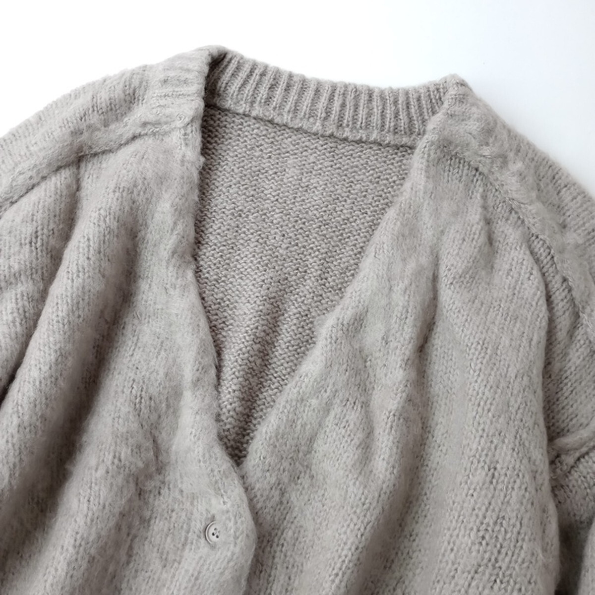 FREAK'S STORE フリークスストア「ゆるっとあざと感。」前後2WAY 深Vネック シャギー ニット カーディガン 長袖 Free ベージュ(28M+1598)