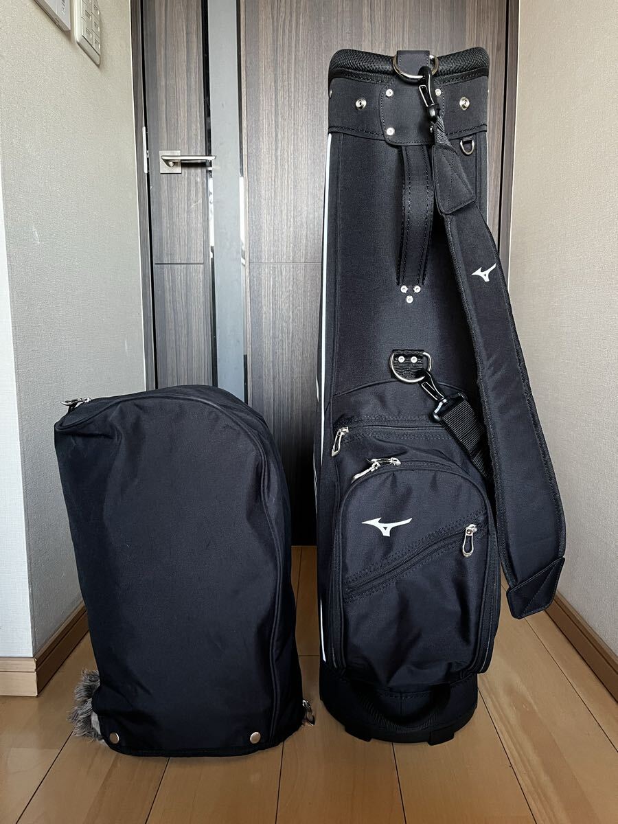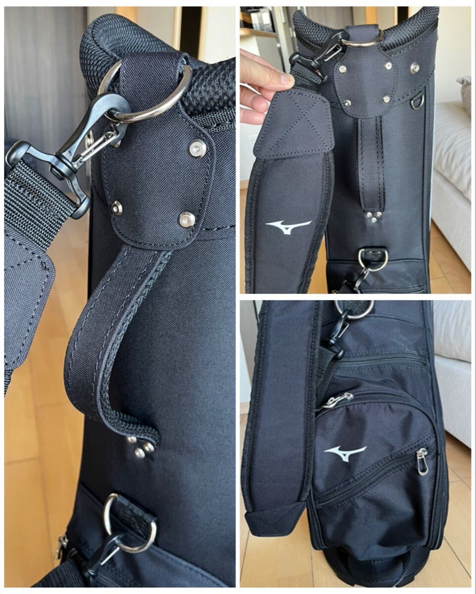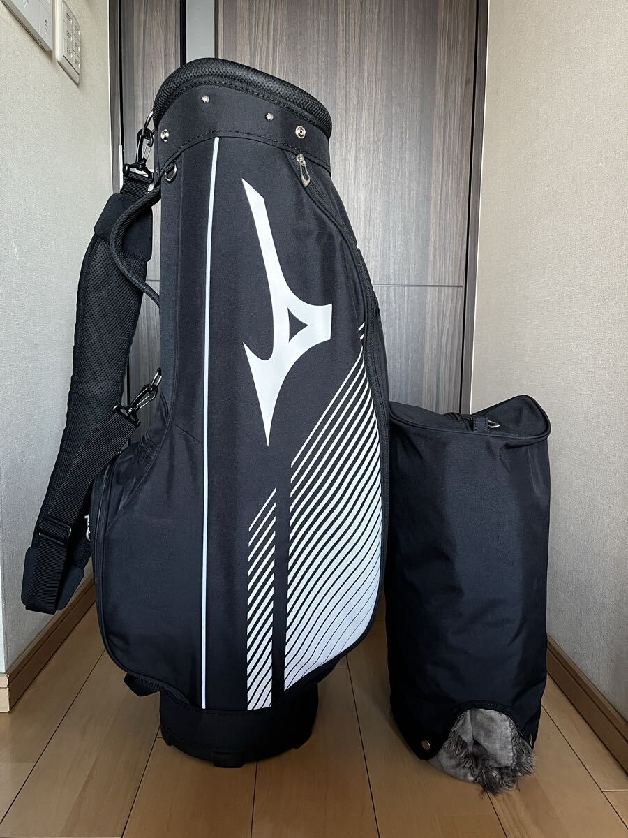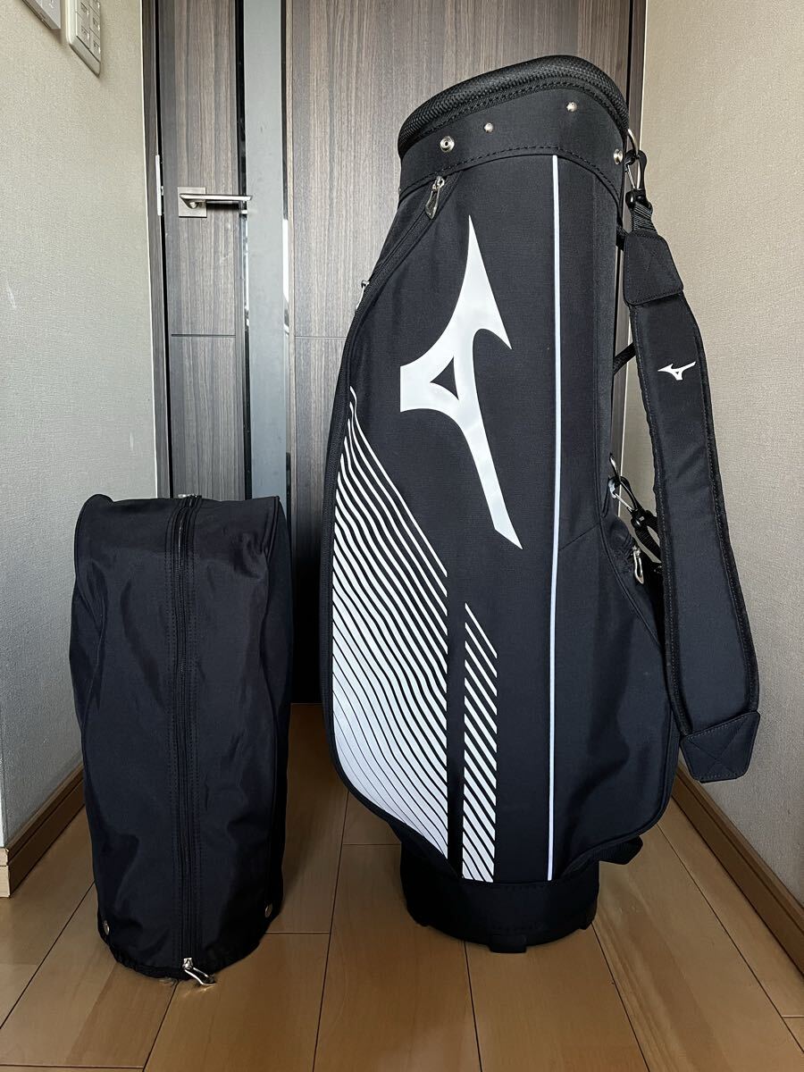 Mizunoのブラックに白が高級感漂う落ち着いた大人のとってもカッコ良いカート型キャディバックになります。