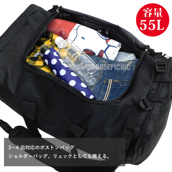 送料無料 3WAY ボストンリュック メンズ レディース リュック ボストンバッグ ショルダーバッグ リュックサック 修学旅行 防災 黒■