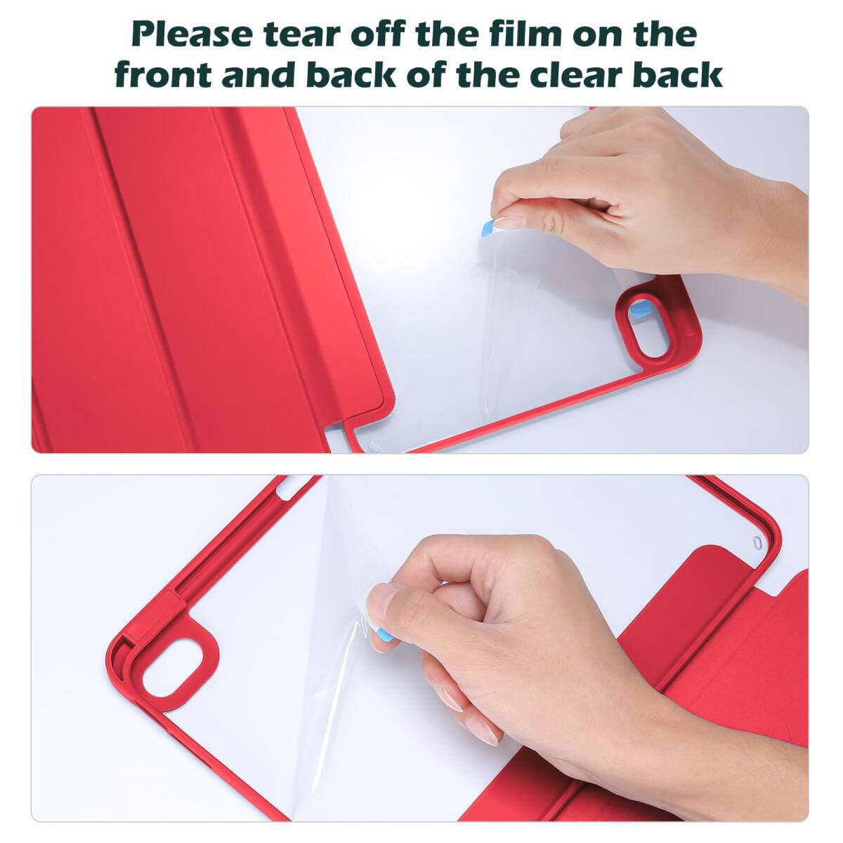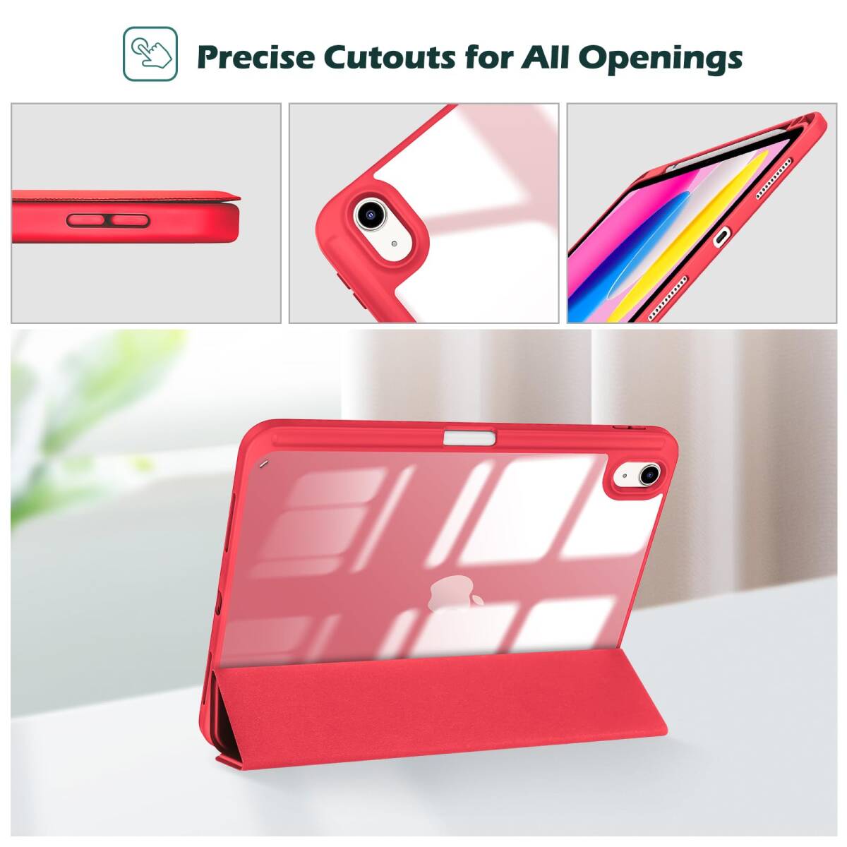 透明でつや消しのPCバックカバーはアイコンを表示し、iPadを衝撃、指紋、引っかき傷から保護します。内蔵したマグネットにより、オートスリープ/ウェイクに対応します。