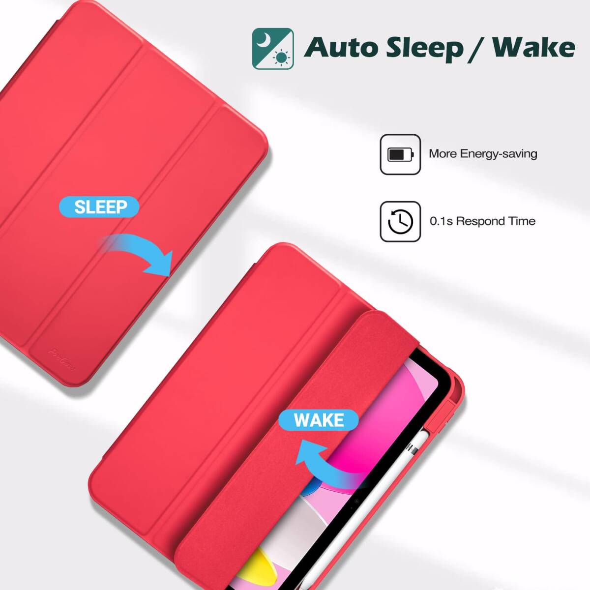 ProCase iPad 11世代/10世代 ケース iPad(A16)11インチ 2025/10.9インチ 2022通用 A2696 A2757 A2777 ペン収納 耐衝撃 三つ折り スタンド スマートカバー(レッド)