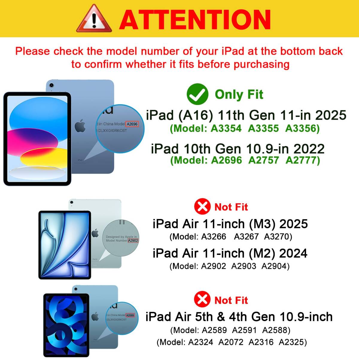 対応端末:iPad 11世代 (A16)11インチ 2025 /10世代 10.9インチ 2022(モデル番号:A2696 A2757 A2777)のみ、その他のデバイスに適用されません、ご購入前にモデル番号をご確認いただきます。
