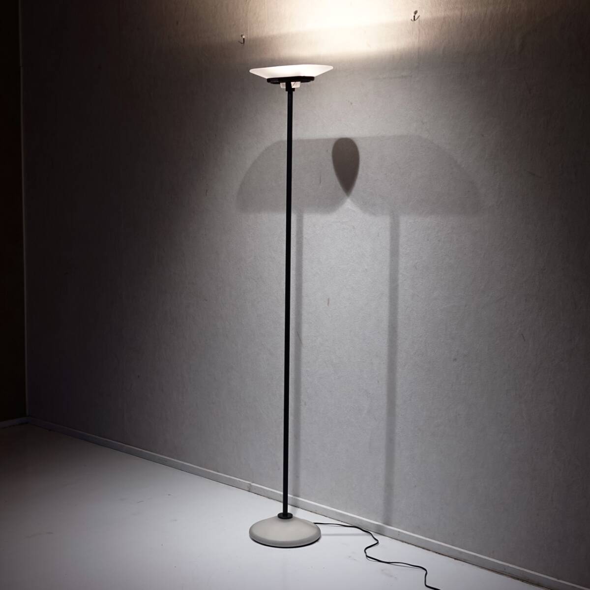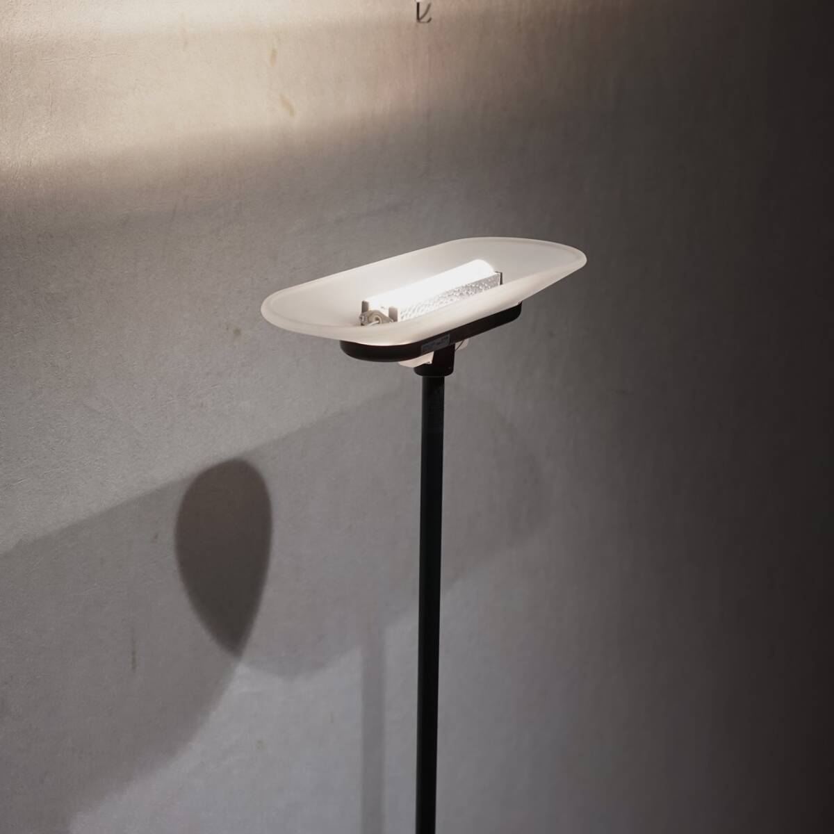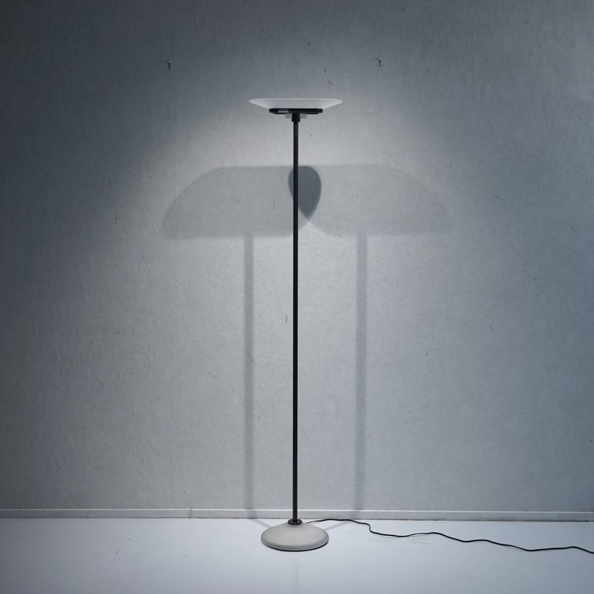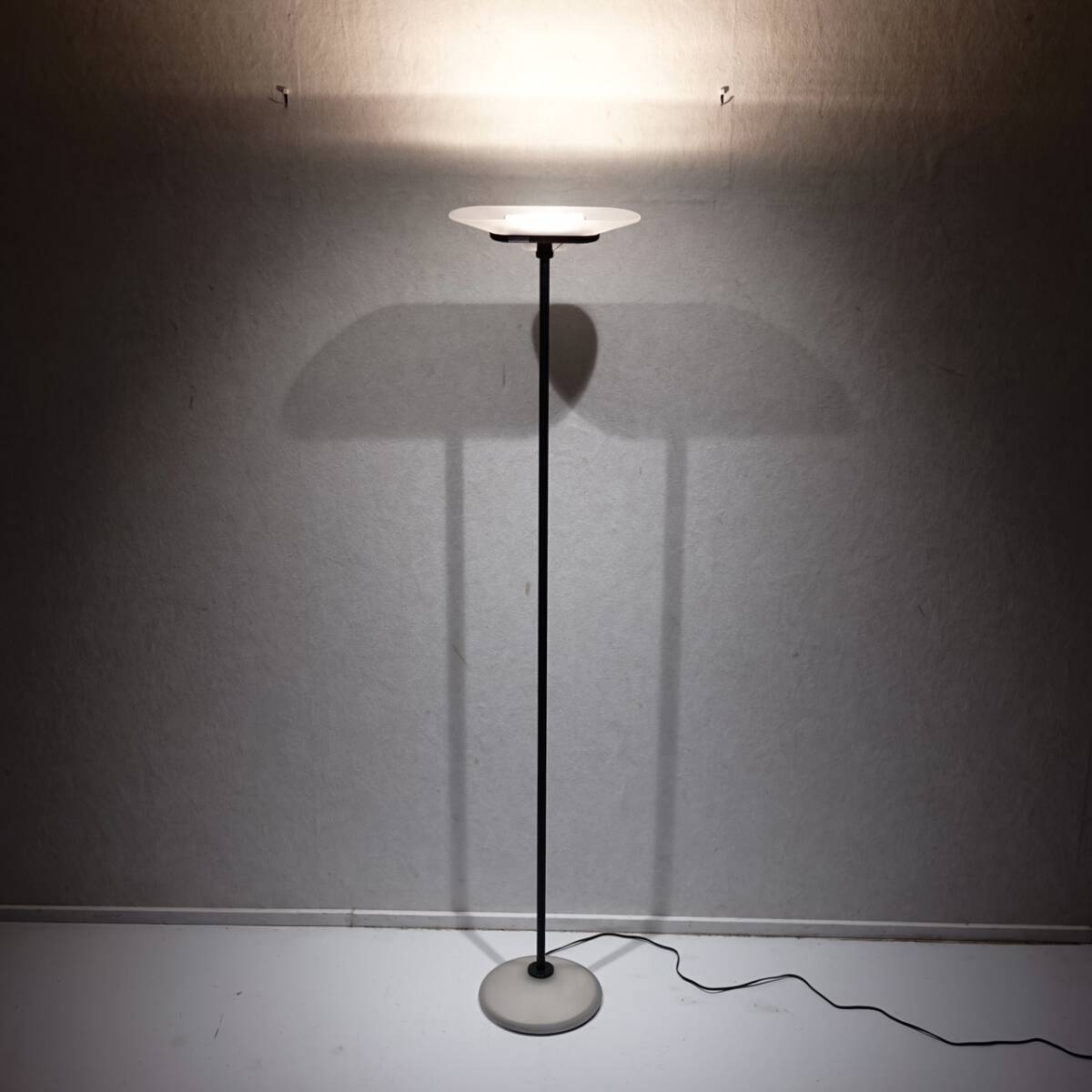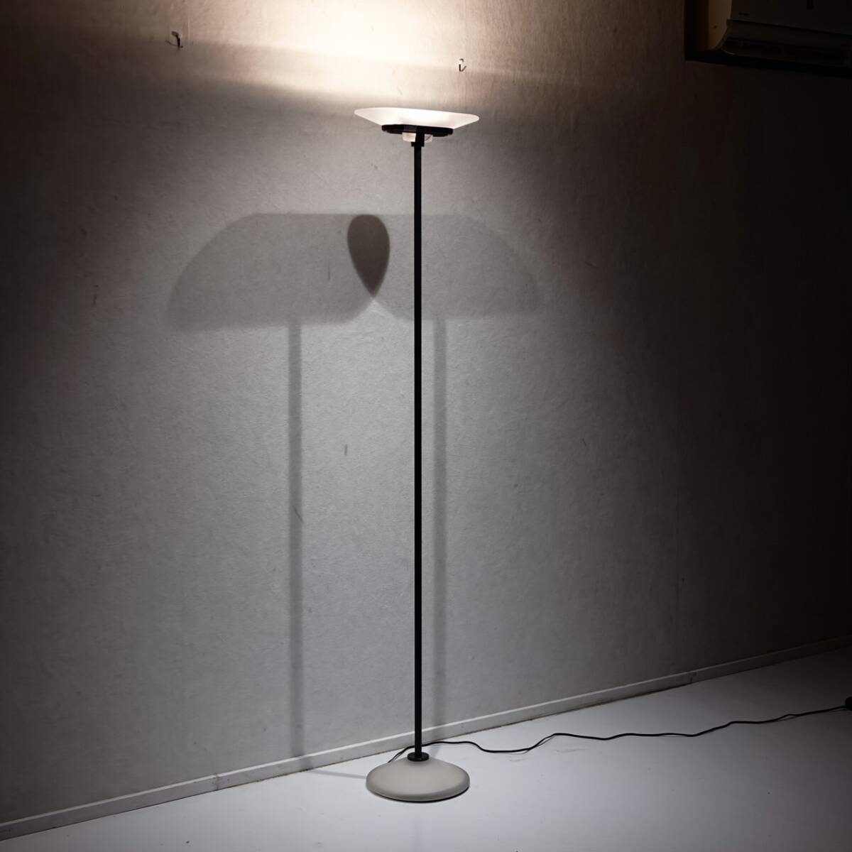 スリムなポールの上に静かに浮かぶように広がる円盤シェードが特徴で、灯りを天井へと柔らかく反射させることで、空間全体に上質な間接光をもたらします。