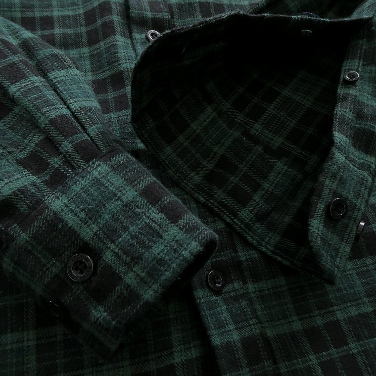 両面起毛ビエラ生地を使用した秋口~春先まで着用いただけるフランネルシャツ。 着用時のチクチク感が無く、コットン混紡素材を使用したソフトな風合いで滑らかな肌触りで着心地の良い仕上がりです。 襟元はボタンダウンカラー、左胸ポケット・センターボックスプリーツ、カジュアルスタイルにぴったりな一枚です。 |