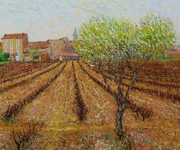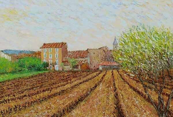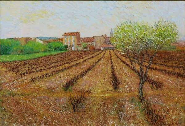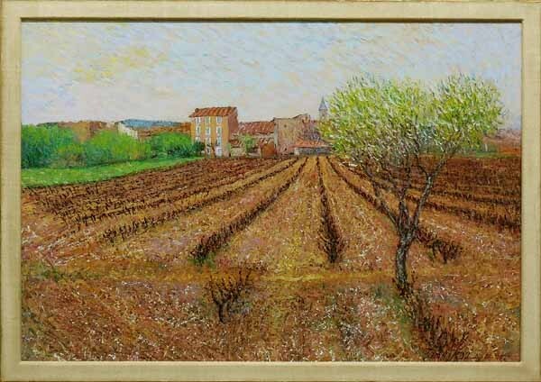 *真作* JEAN VOLLET(ジャン・ボレット) 外国風景画 キャンバスに油彩/1935年生まれのフランス人気画家/畑/秋/絵画/仮額/現代アート/美術