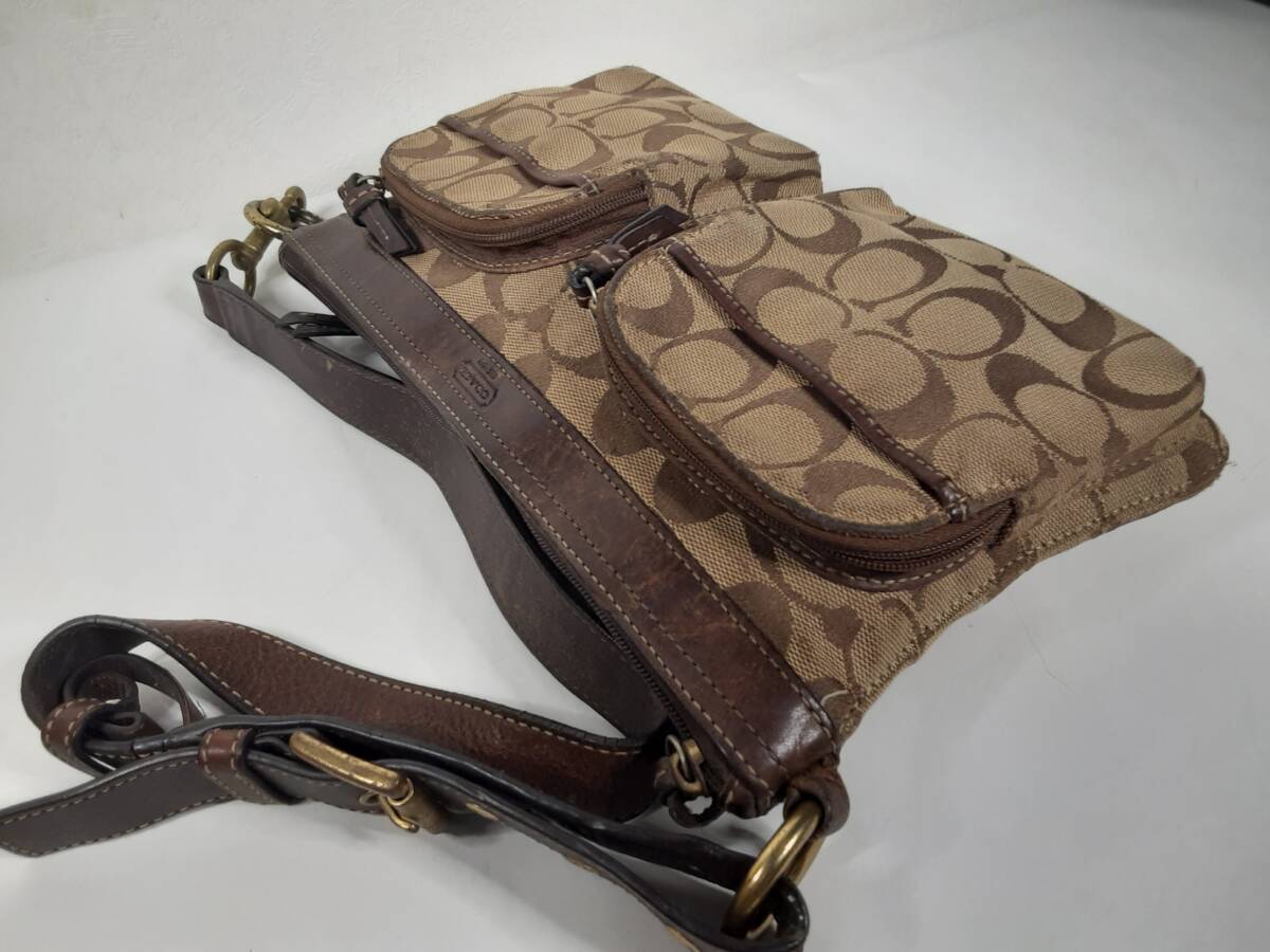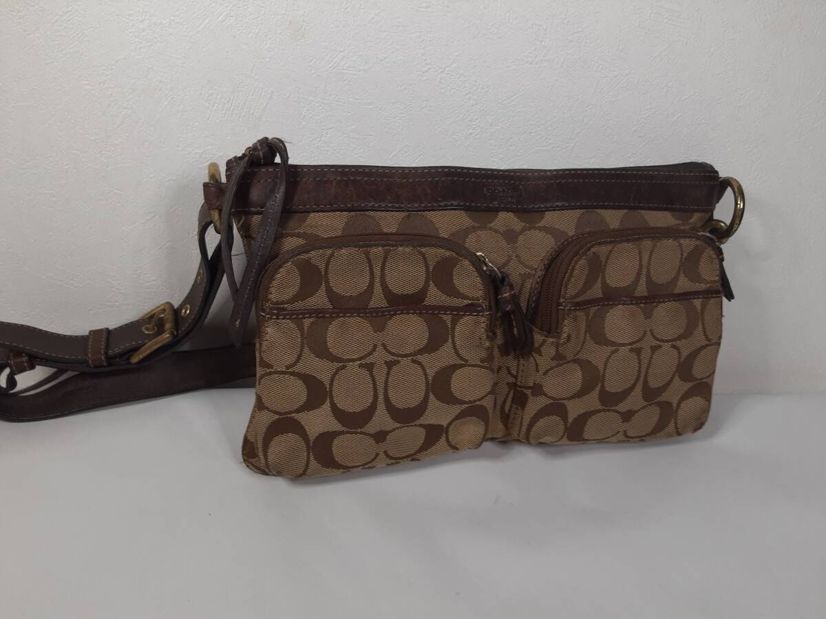 ★美品!★COACH コーチ★とってもお洒落で素敵な♪シグネチャー ウエストポーチ ウエストバッグ 斜め掛けポーチ 13890 キャンバス レザー■本物■