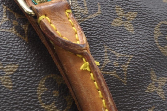 全体ヤケ、スレ(中) 持ち手ワレ(中) 中ポケットベタ、ハガレ(中) 糸切れ有り