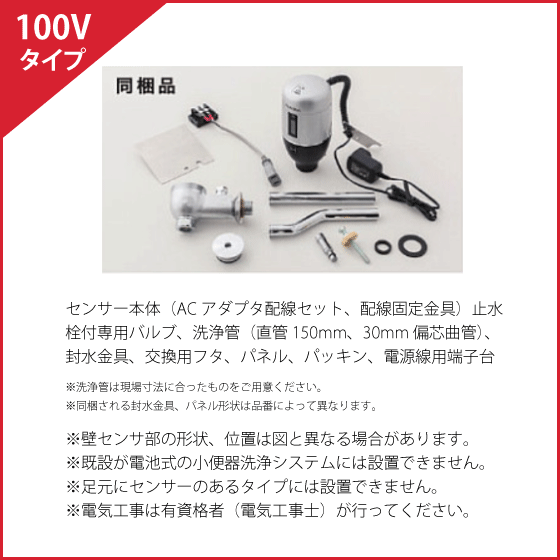 100Vタイプ:AC100V 50-60Hz(壁内の既設電源を利用)