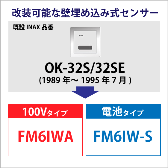 ミナミサワ FM6IW-S FM6IWA INAX OK-32S/32SEシリーズ用 壁埋め込み改装用小便器センサー フラッシュマン リカバリー1 電池タイプ AC100Vタ