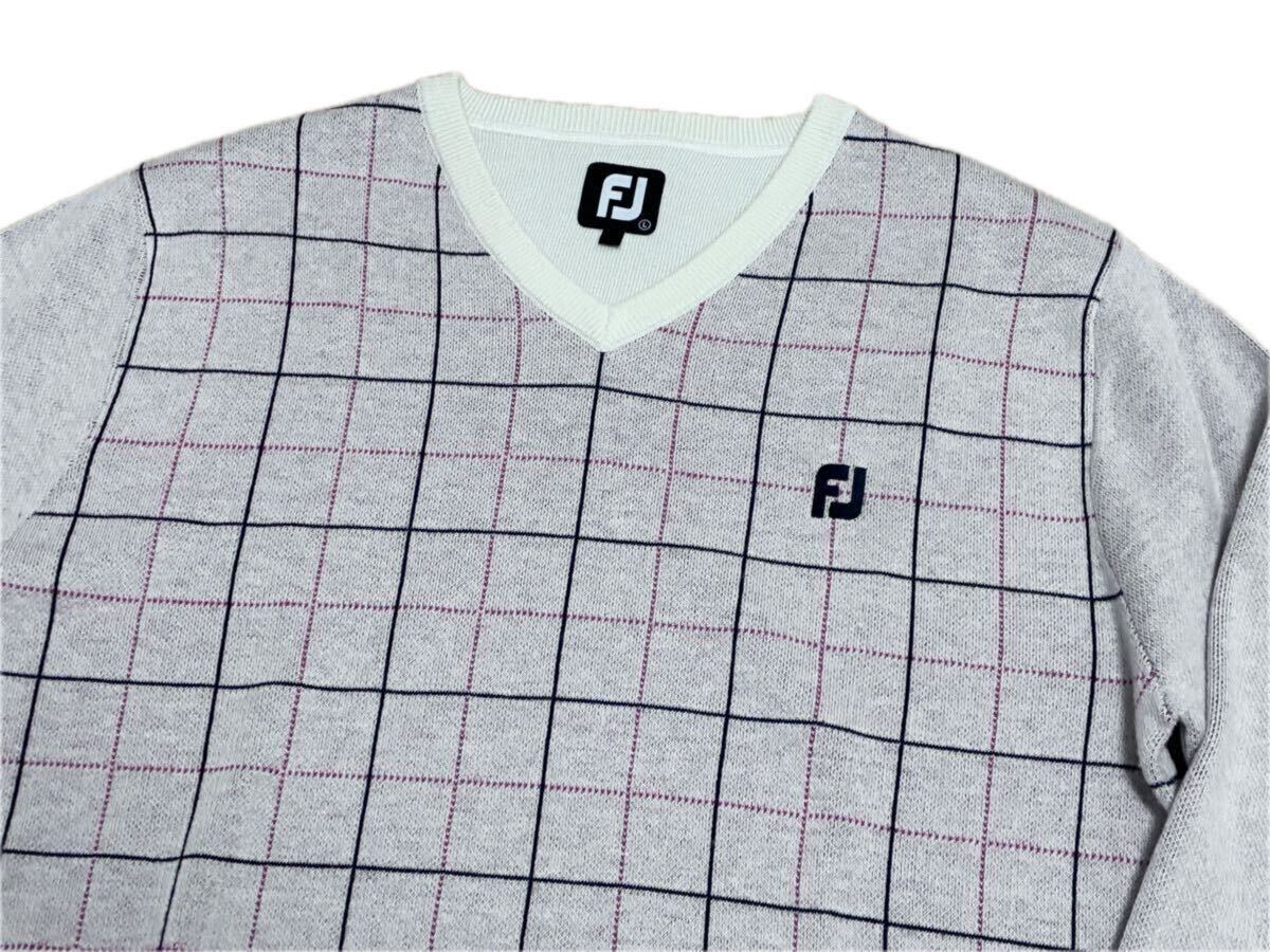 フットジョイ ゴルフウェア 長袖セーター ウィンドウペーンチェック Vネックセーター 0353043996 ウール採用