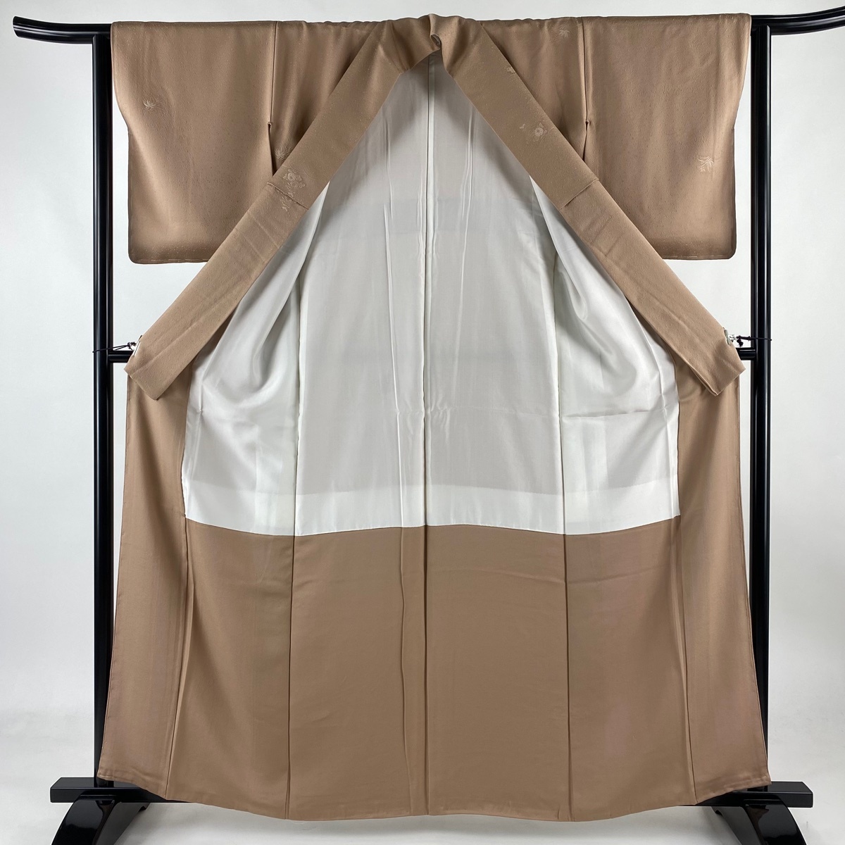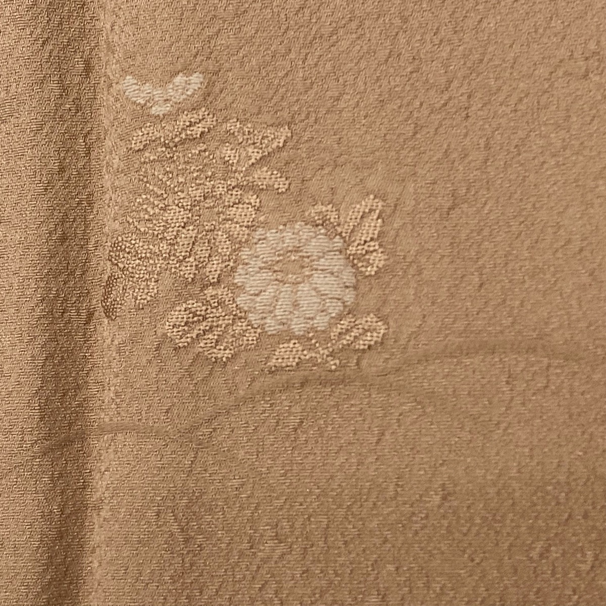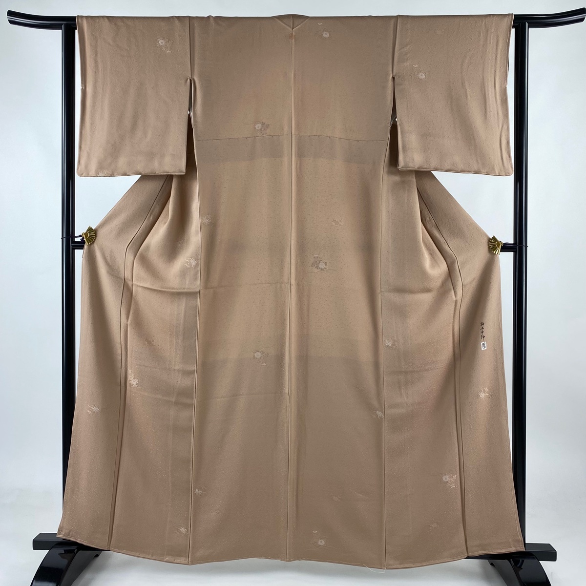 | 小紋 美品 名品 柿本市郎 落款 菊 地紋 刺繍 ピンクベージュ 袷 身丈161 裄丈63 S 正絹 【中古】 |