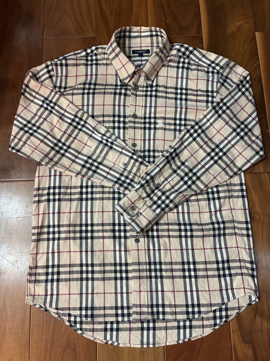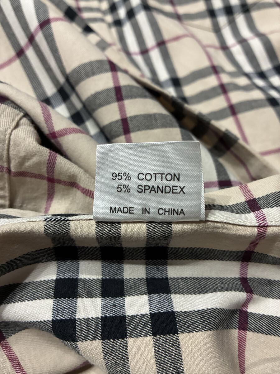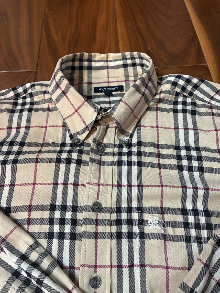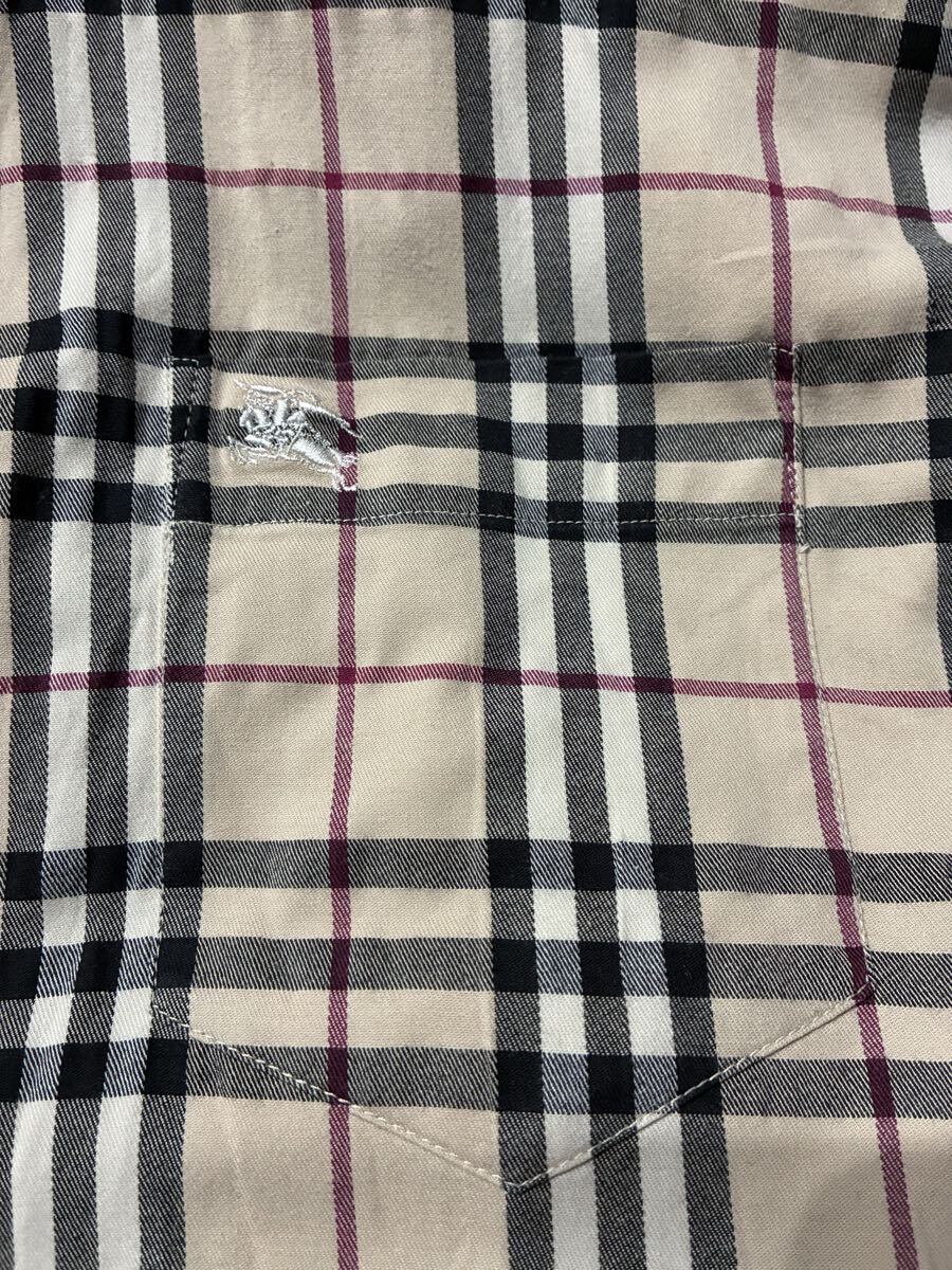 ベージュのノバチェック総柄、胸ポケットにホース刺繍が入っております。