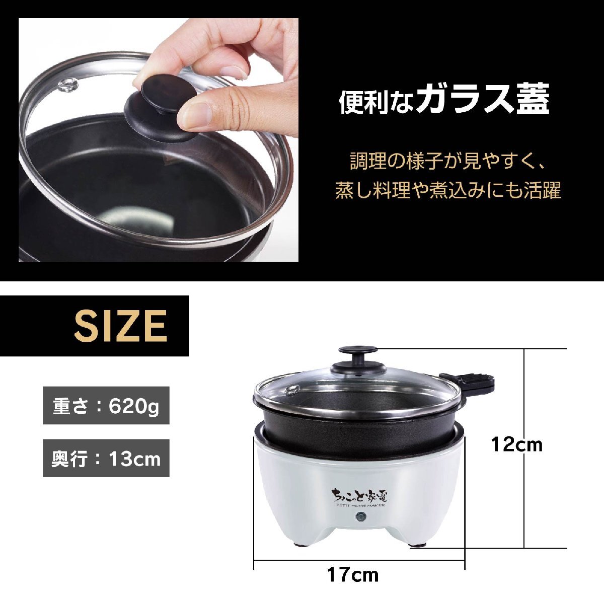便利なガラスふた付き:調理の様子が見やすく、蒸し料理や煮込みにも活躍