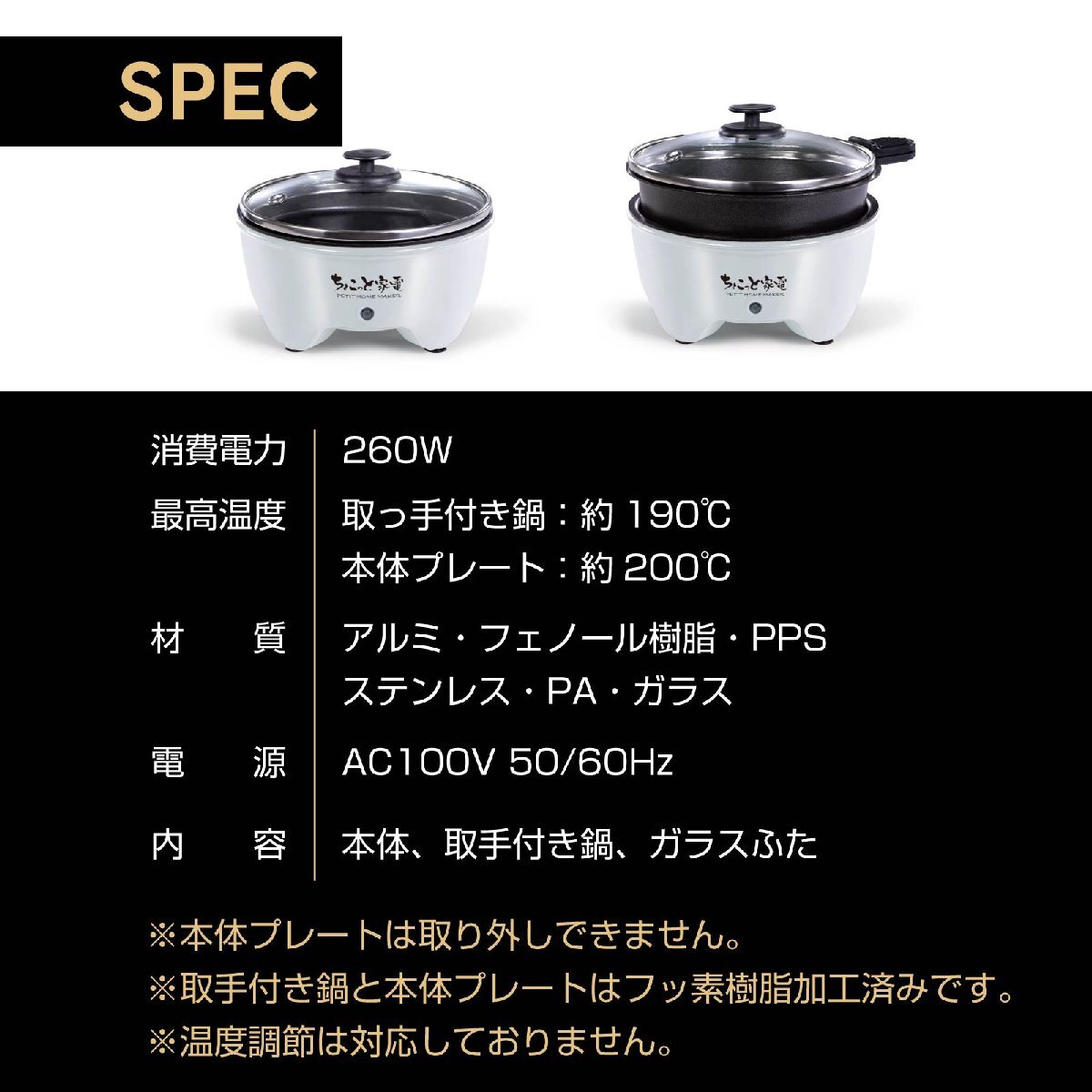 プレート最高温度:鍋 約190℃/本体プレート 約200℃