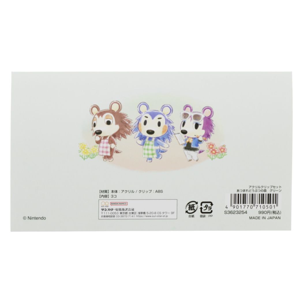 アクリルクリップセット 3個セット あつまれどうぶつの森 クリップ サンスター文具 グリーン あさみ きぬよ ことの