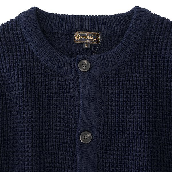 【CHUBEI】 毎日の装いを心から楽しむことをコンセプトに、機能的で遊び心を加えたSTANDARDアイテムを提案。タウンカジュアルとアウトドアカジュアルをミックスし、様々なシーンで活用頂けるライフスタイルブランド。 厚手で暖かみがあるざっくりとした片畦編みニットのカーディガンです。 しっかりとした肉感で肌心地が良い風合いのウールブレンドニット素材を使用しており、自宅で気軽に洗えるウォッシャブル仕様のため、クリーニングを気にせずにデイリーに着用ができるのも嬉しいポイントです。 大きめのフロントボタンがアクセントになっていて、カーディガンとしてもニットブルゾンとしても着用がしやすく、肘部分にはフェイクスエード素材のエルボーパッチをあしらい、首元はトレンド感のあるクルーネックで仕上げています。 左前裾には、CHUBEIのトレードマークである「ハリネズミ」の刻印が入った、フェイクレザー製のネームタグが装飾されています。 |
