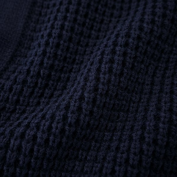 | 新品 未使用 紙タグあり LLサイズ(画像は別サイズで撮影) チェスト104~112 身長175~185 ※商品に記載されたサイズ・寸法です※ 肩幅49cm 身幅58cm 袖丈62cm 着丈68cm ※伸縮性が高いニット素材のため多少誤差が生じることがあります※ アクリル70% 毛30% ネイビー |