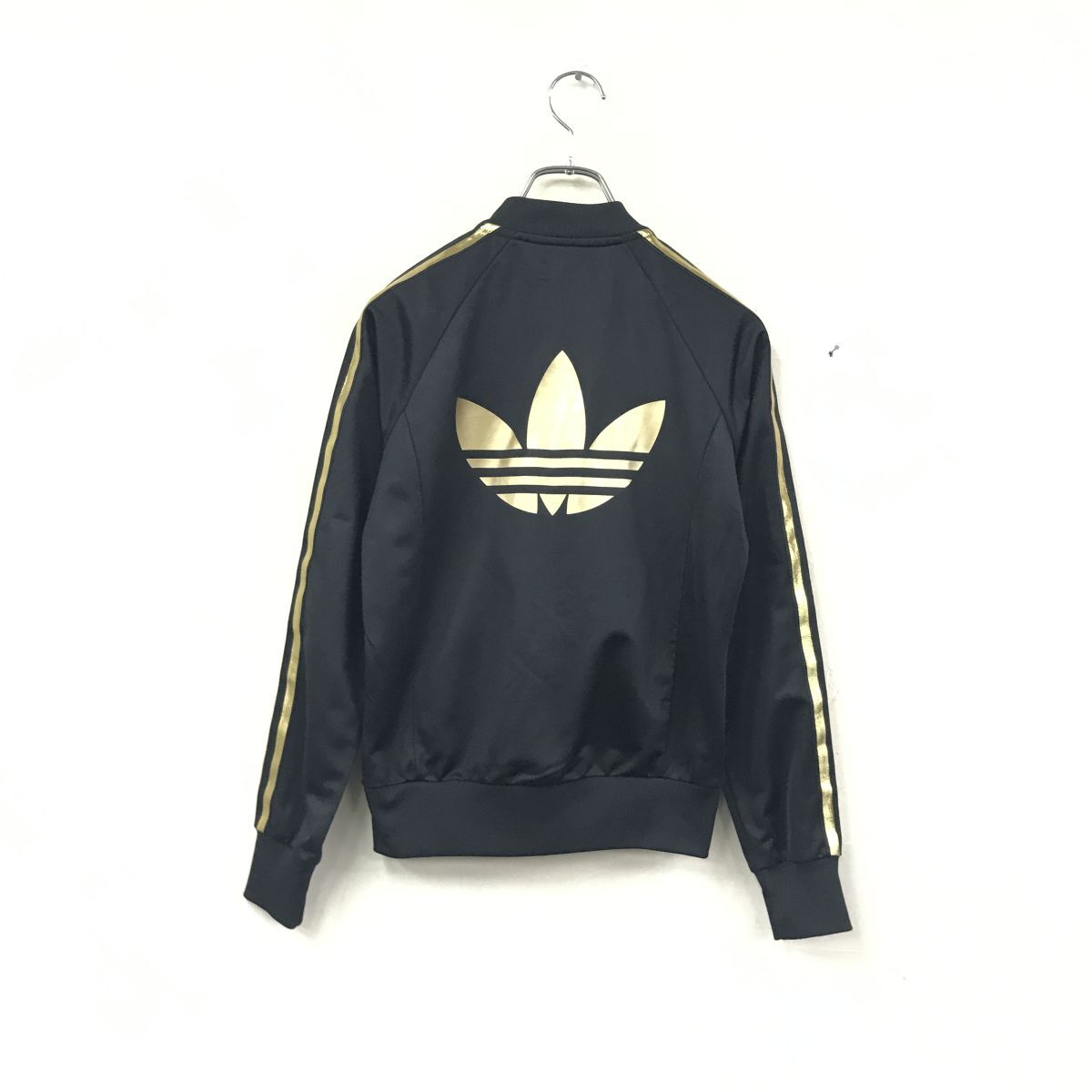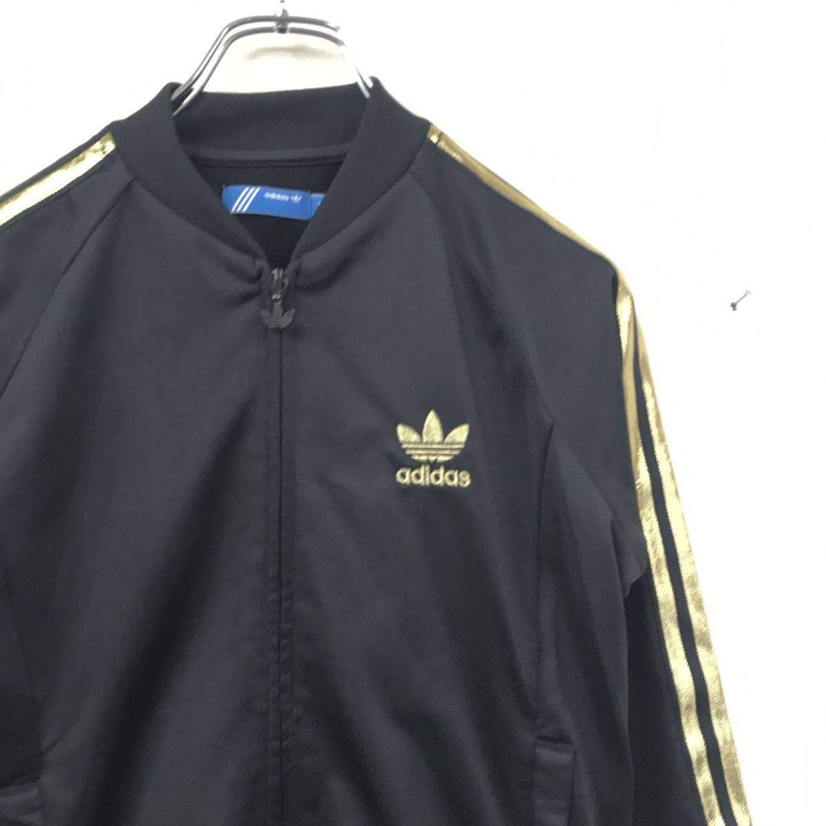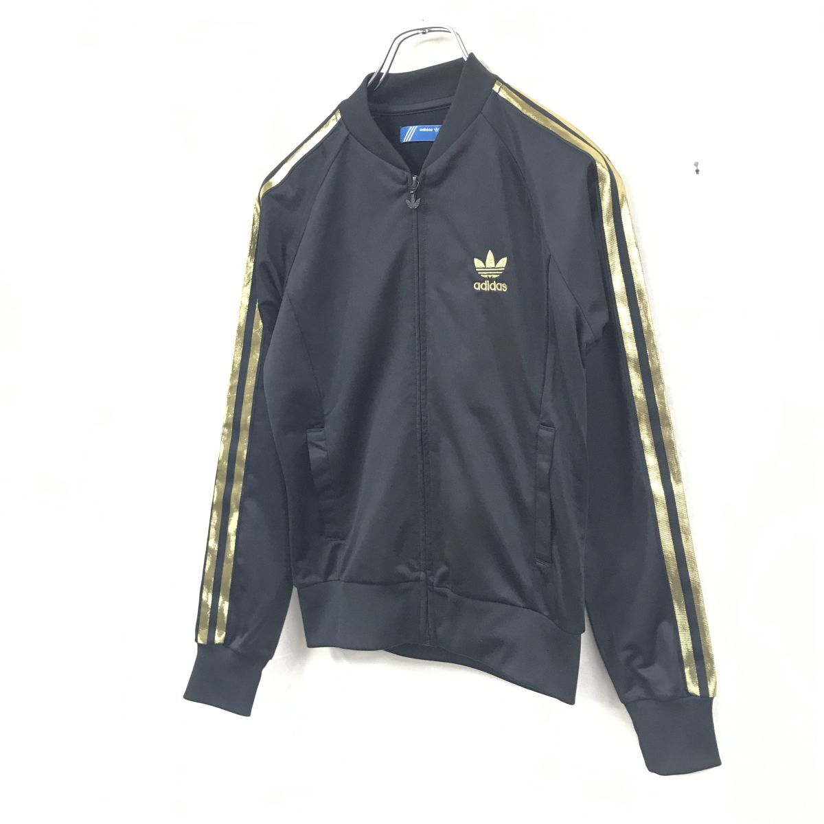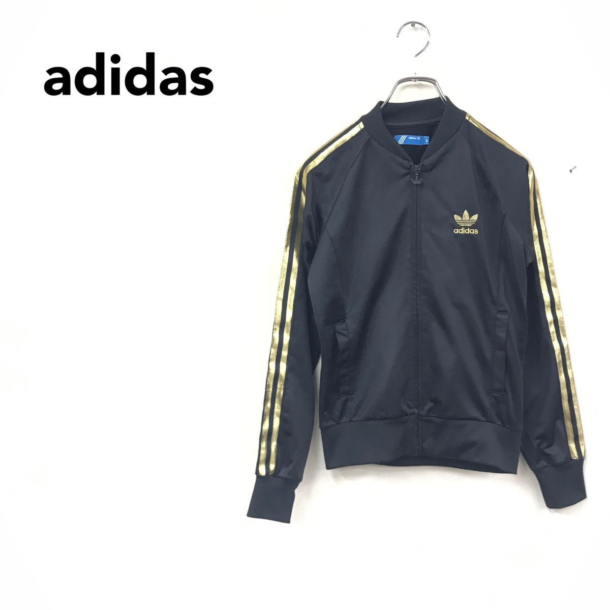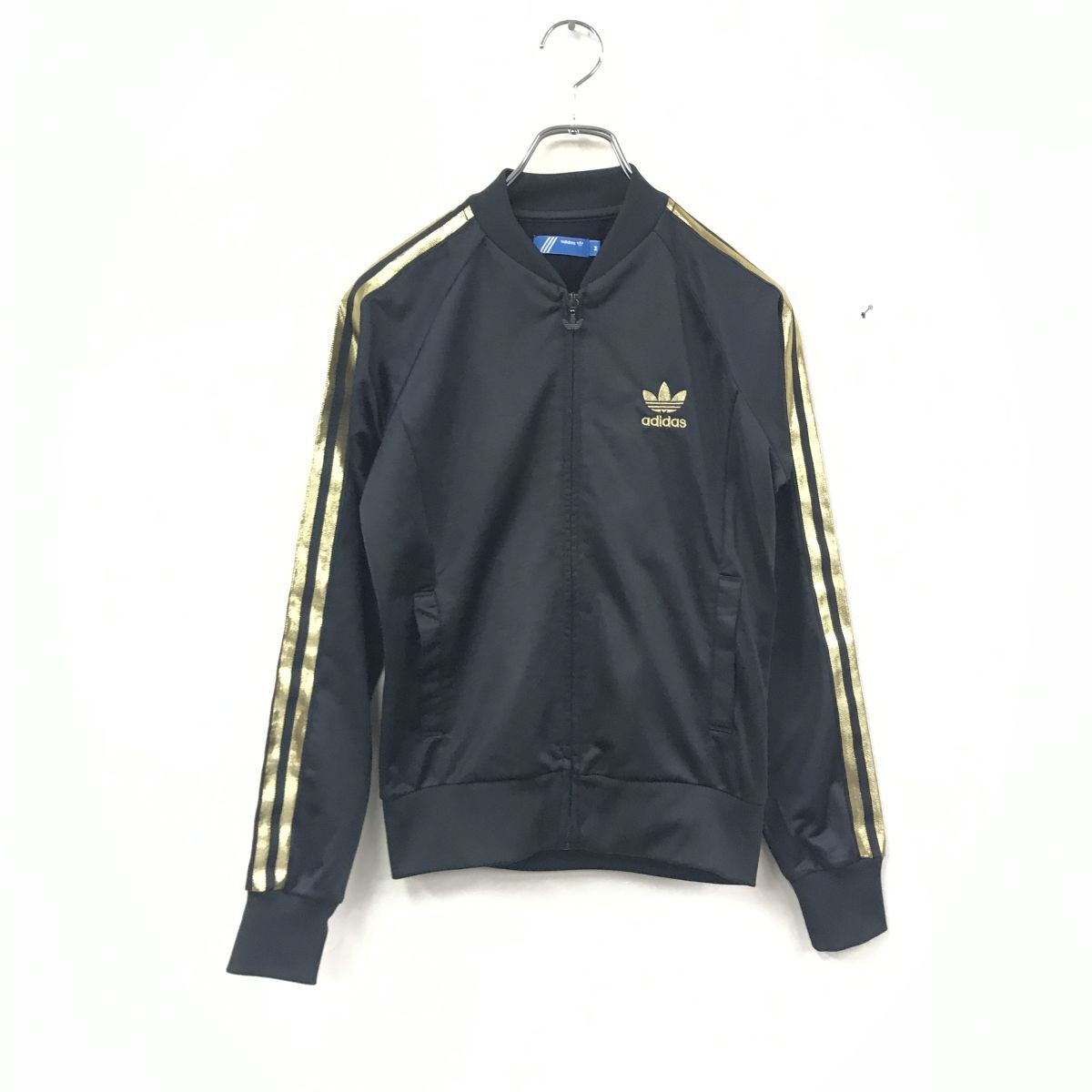 2N1512-O◆adidas アディダス トラックジャケット ジャージ フルジップ ブランドロゴ ワンポイント◆sizeM ブラック ポリエステル