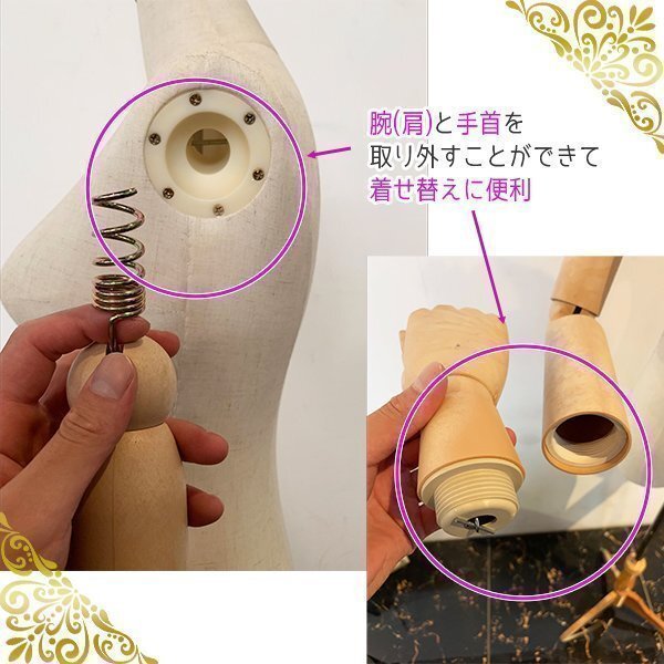 ▼トルソー マネキン レディース 腕付き 9号 麻 木目調 可動式 パンツ対応 アーム付きトルソー 木製3本脚 腕付きトルソー 女性 撮影 アパレ