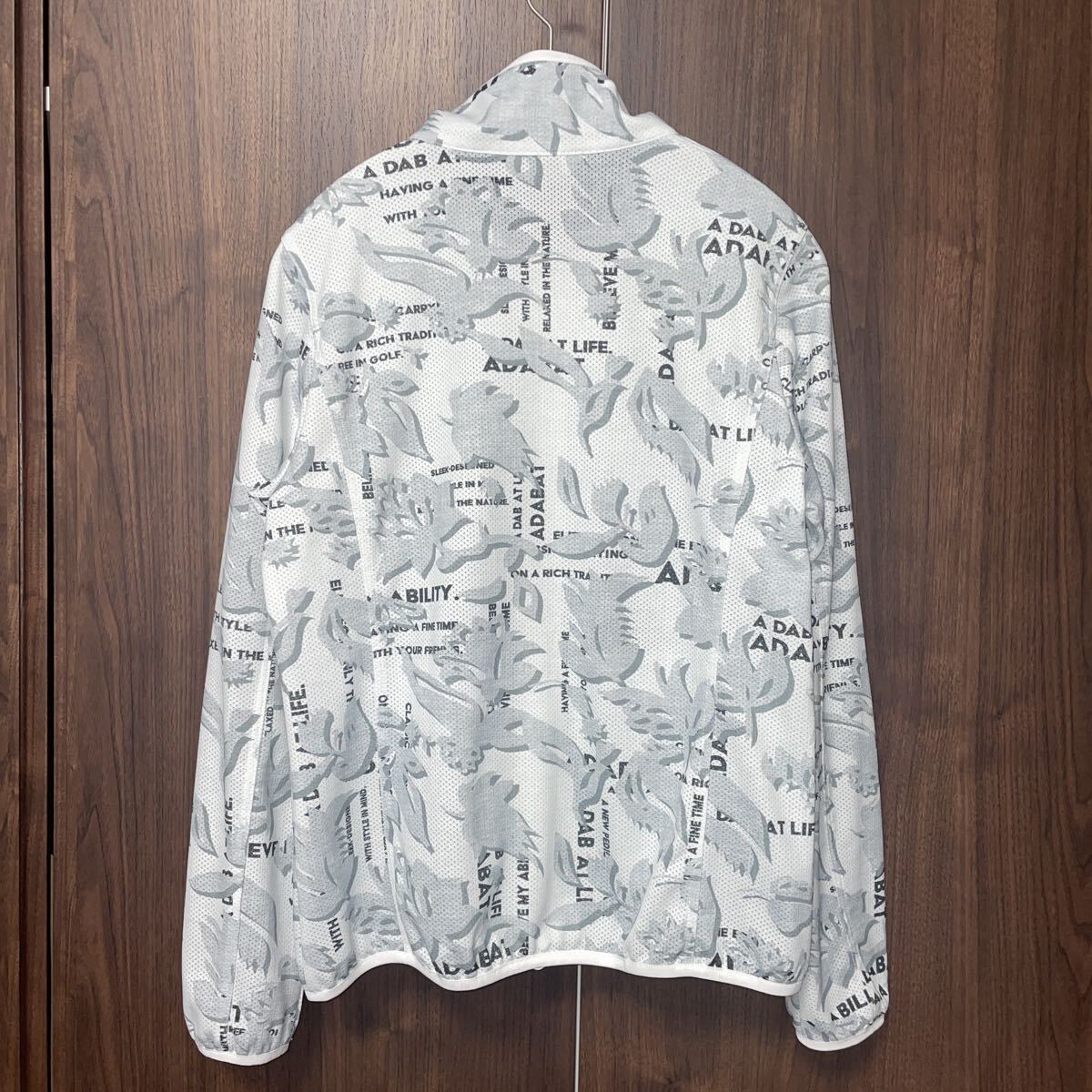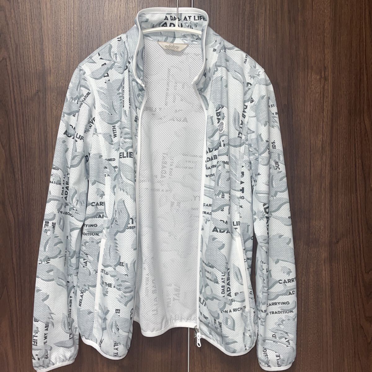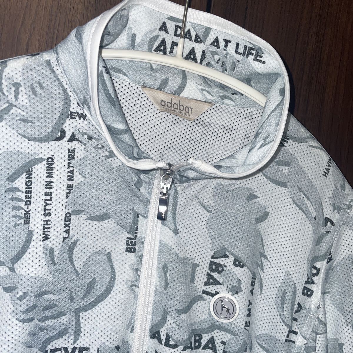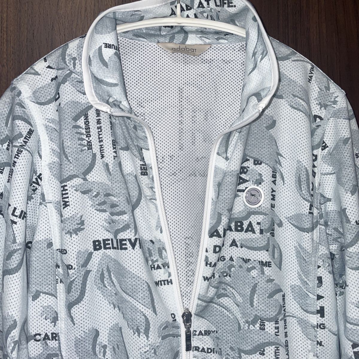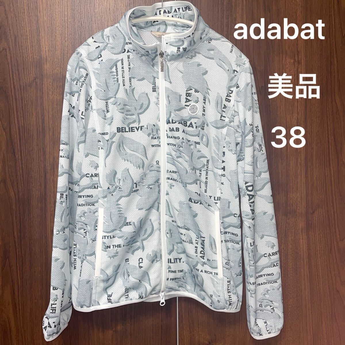 美品!adabat フルジップ ゴルフウェア 38 ジャケット ジャンパー 総柄 上着 羽織り アウター レディース メッシュ アダバット