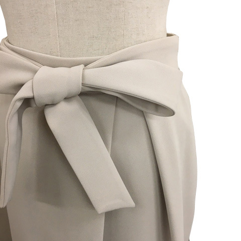 【仕様】左ファスナー仕様です。 ポケットは両サイドに付いています。 バックウエストの中央はゴム仕様です。 裏地が付いています。