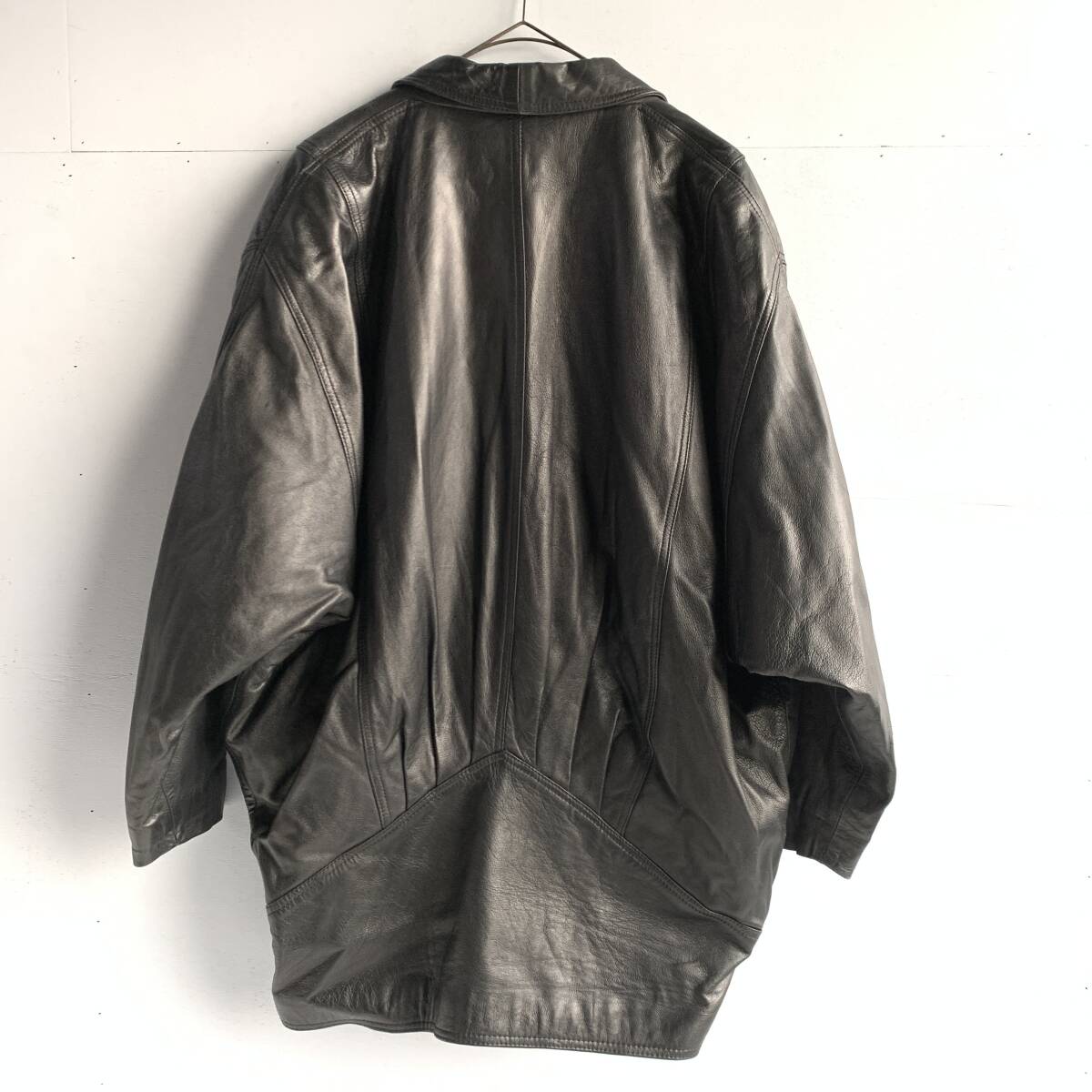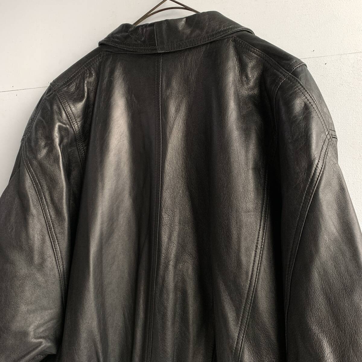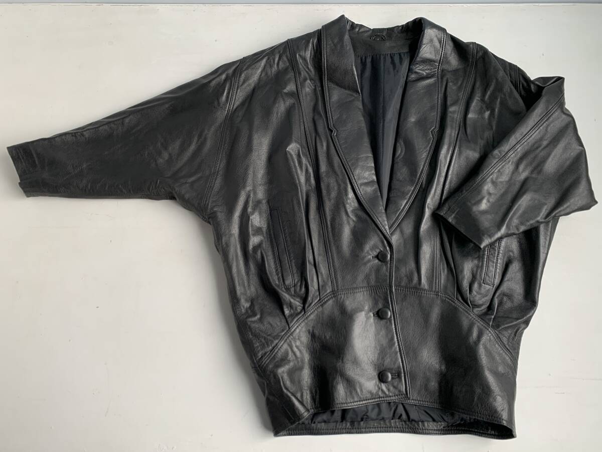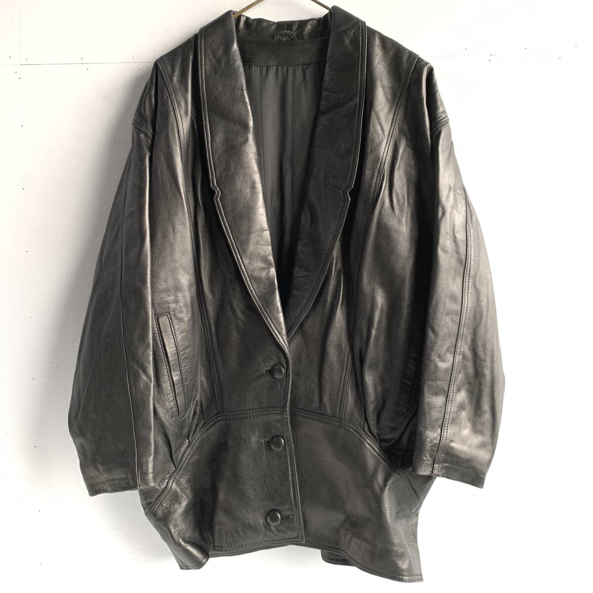 ☆UNKNOWN Vintage 本革 リアルレザー ショールカラーレザージャケット レザーコート ブラック サイズF 古着【送料一律/同梱可能】I