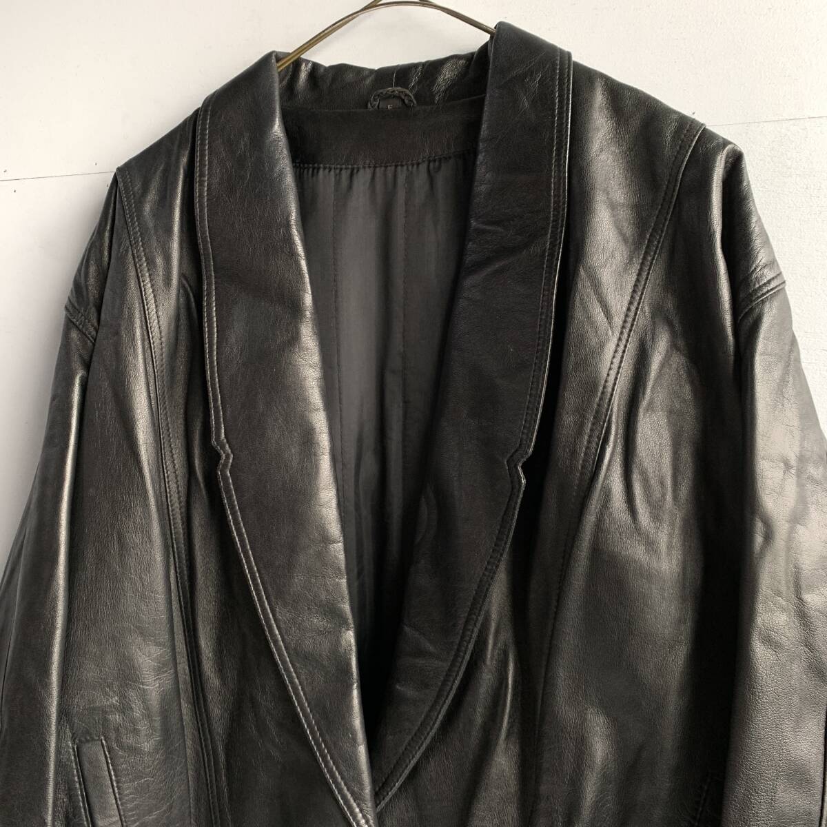 ☆UNKNOWN Vintage 本革 リアルレザー ショールカラーレザージャケット レザーコート ブラック サイズF 古着【送料一律/同梱可能】Iの出品です。