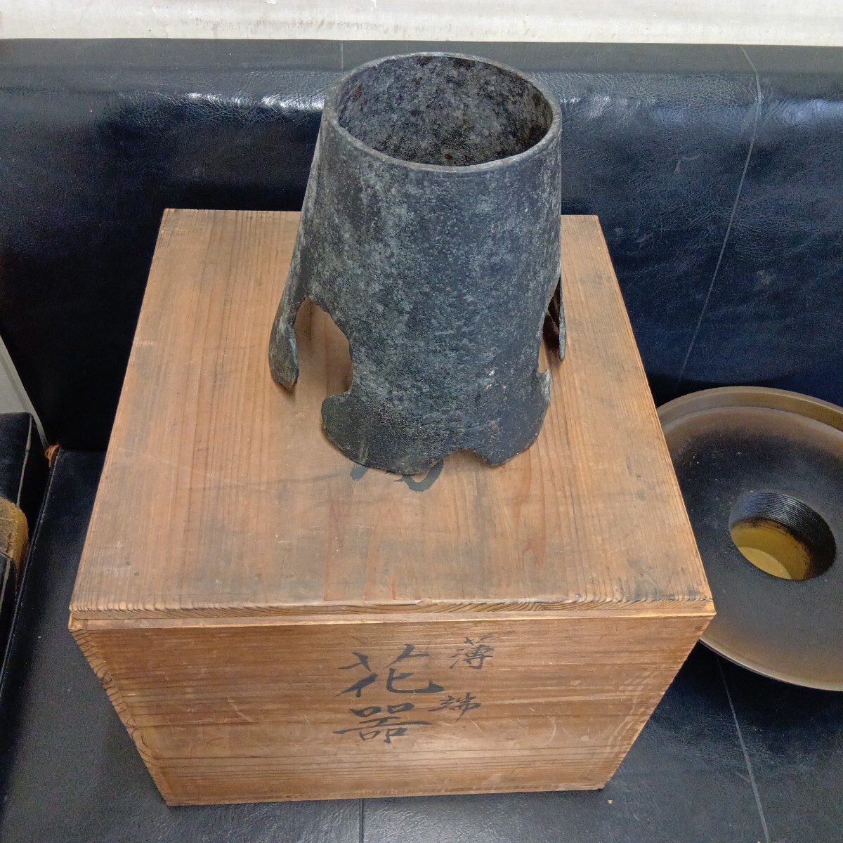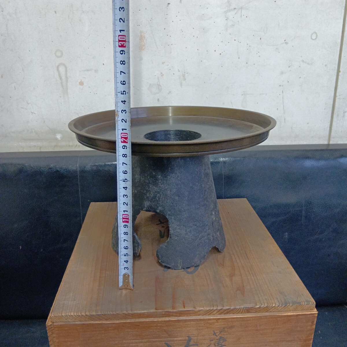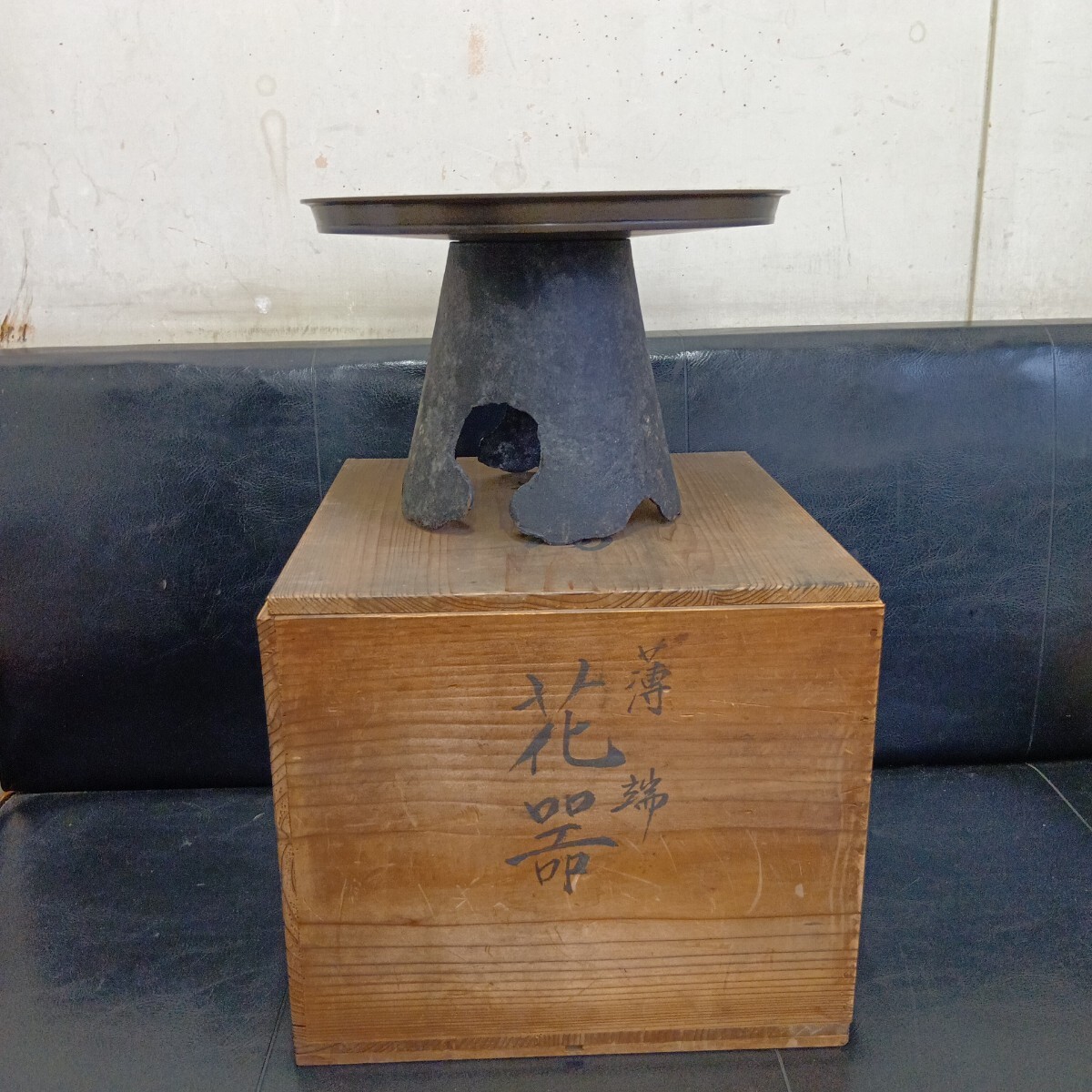 花器 薄端 旧家蔵出し品 古い為全体的汚れ有り 現状品 高さ約20cm 上皿径約29.5cm 良く画像をご覧頂き入札をお考え下さい