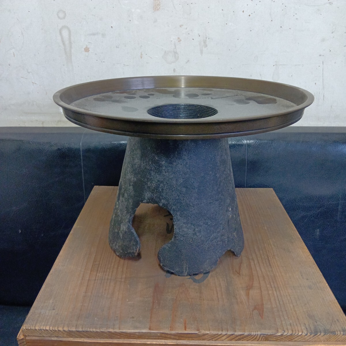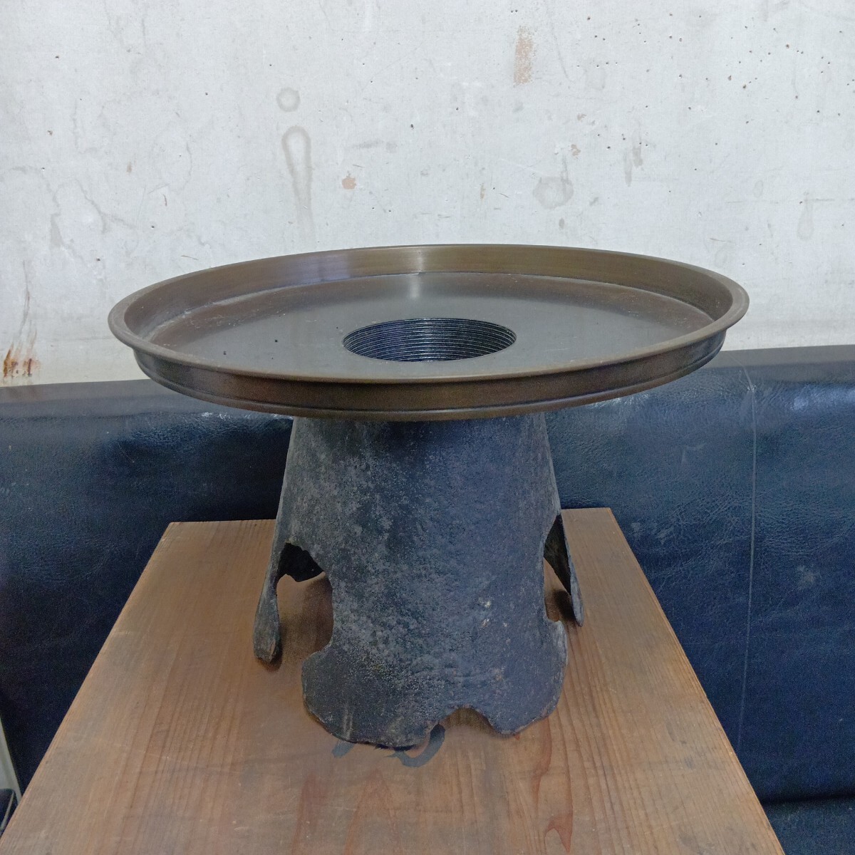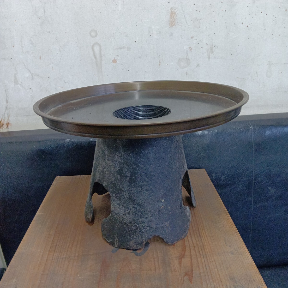 花器 薄端 旧家蔵出し品 古い為全体的汚れ有り 現状品 高さ約20cm 上皿径約29.5cm 良く画像をご覧頂き入札をお考え下さい