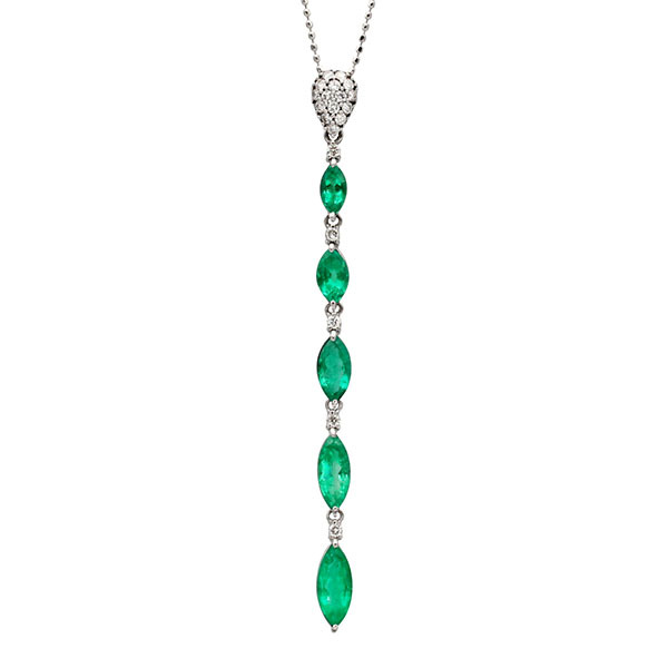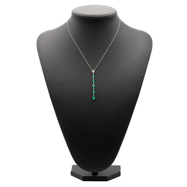 5連のエメラルドとダイヤモンドが軽やかにスウィングするネックレス。