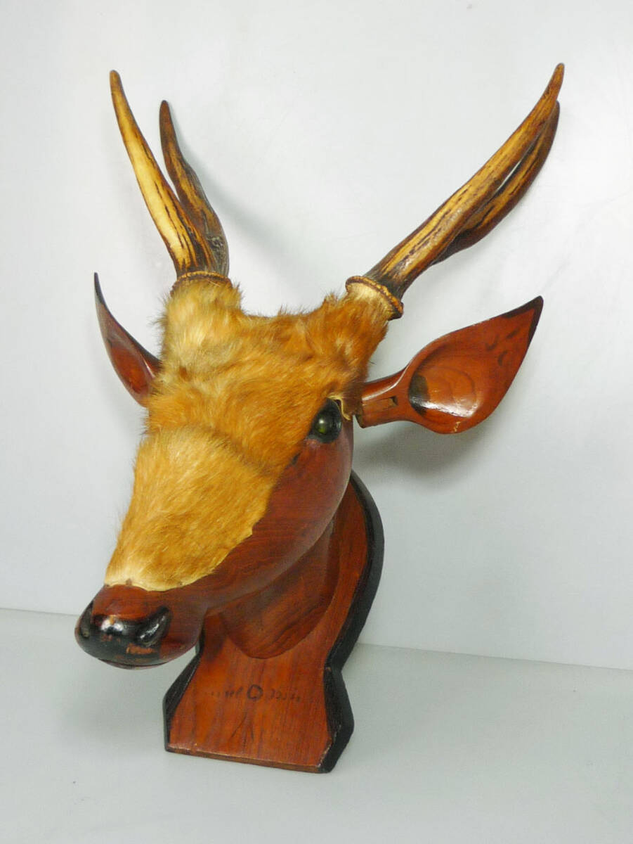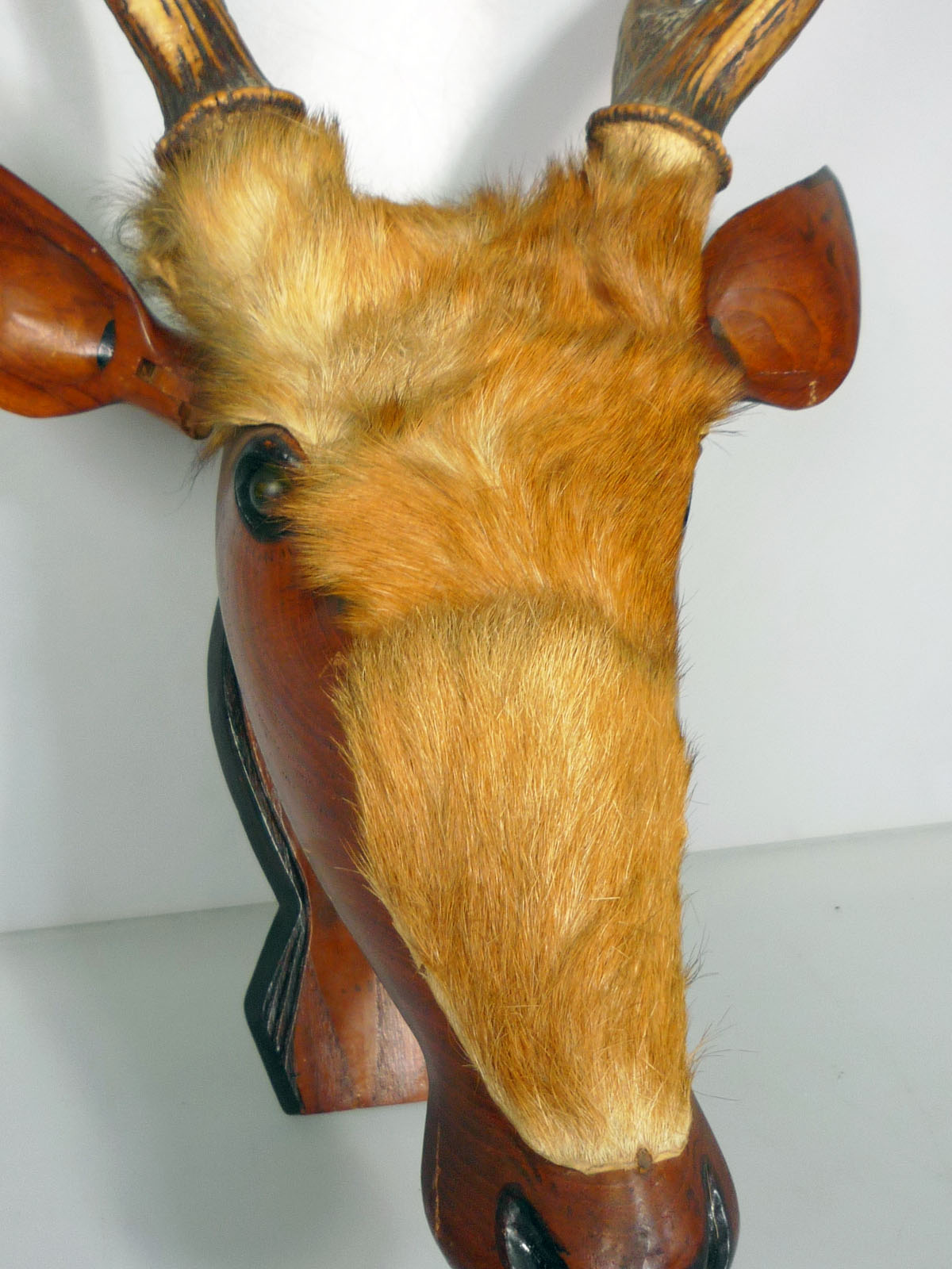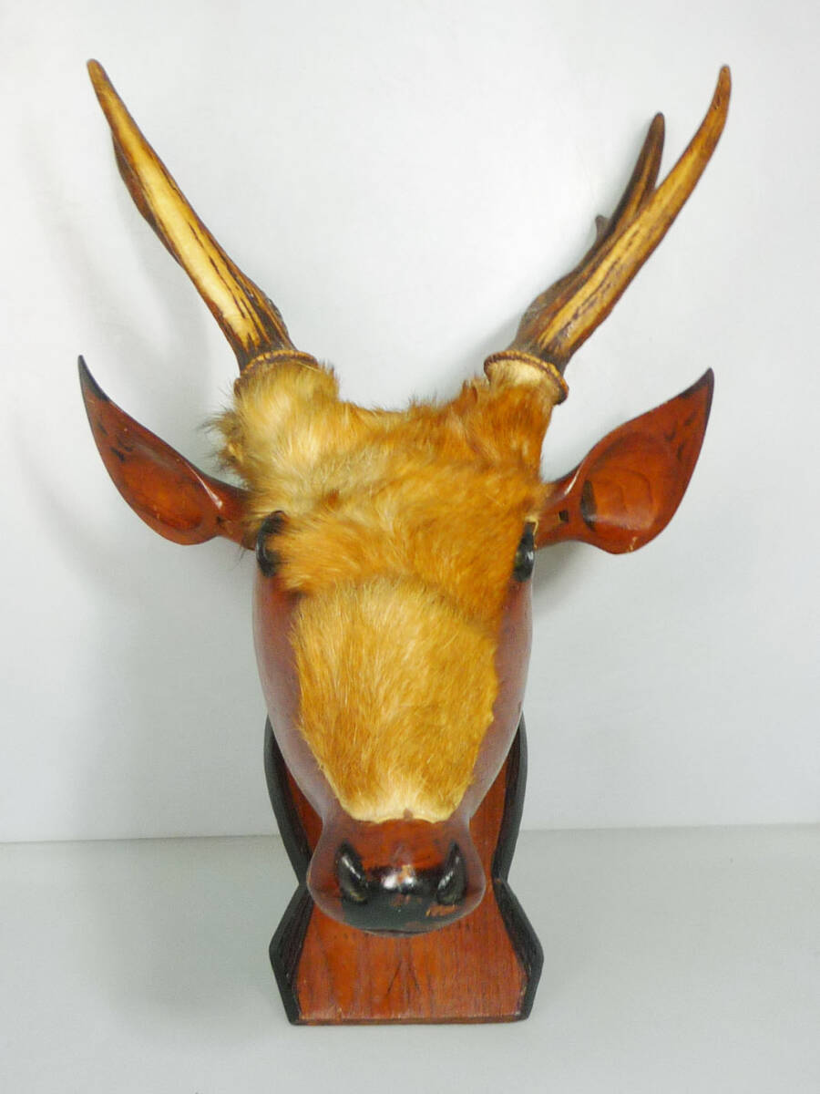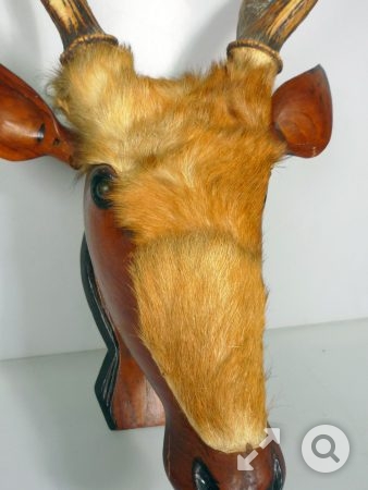 | 商品説明 | 剥製風の木製壁掛けオブジェです。 耳は取り外しや角度等調整することができます。 本物の角と毛皮が使用されています。 お部屋や店舗のインテリアにいかがですか☆ |