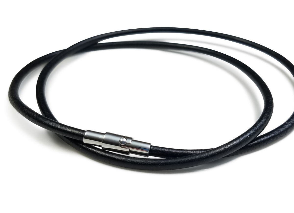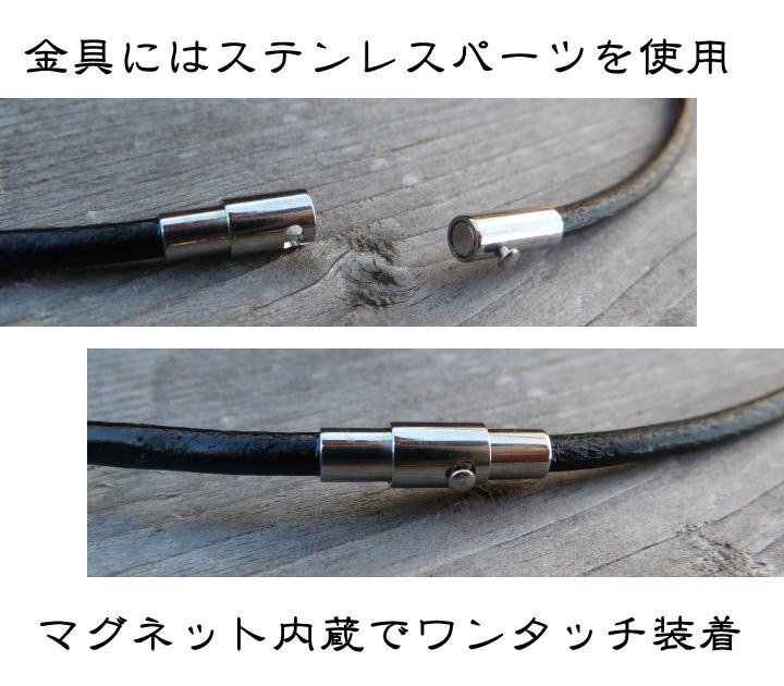 レザーチョーカー牛革丸紐◆3mm/45cmブラックマグネット金具国産本革サーファースケーターバイカープレゼントギフト贈り物誕生日記念日