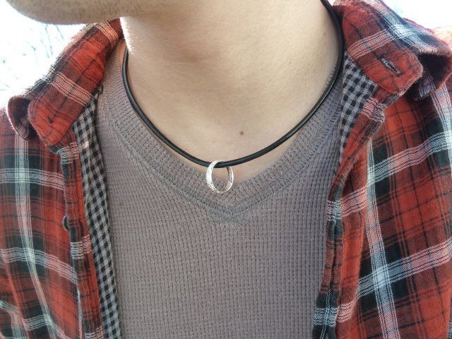 普段指にはめるリングが仕事中はつかえない、サイズがあわなくて使えないなど。そういった場合にこの革紐に通してネックレスにすることで毎日リングを身に着けていることができるのです。