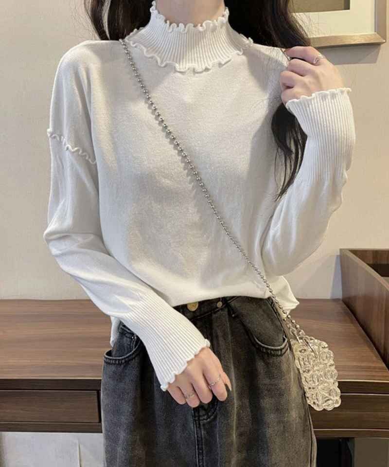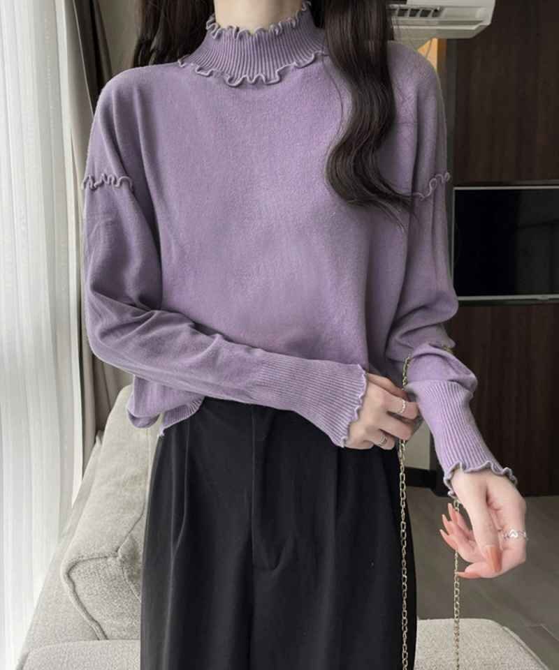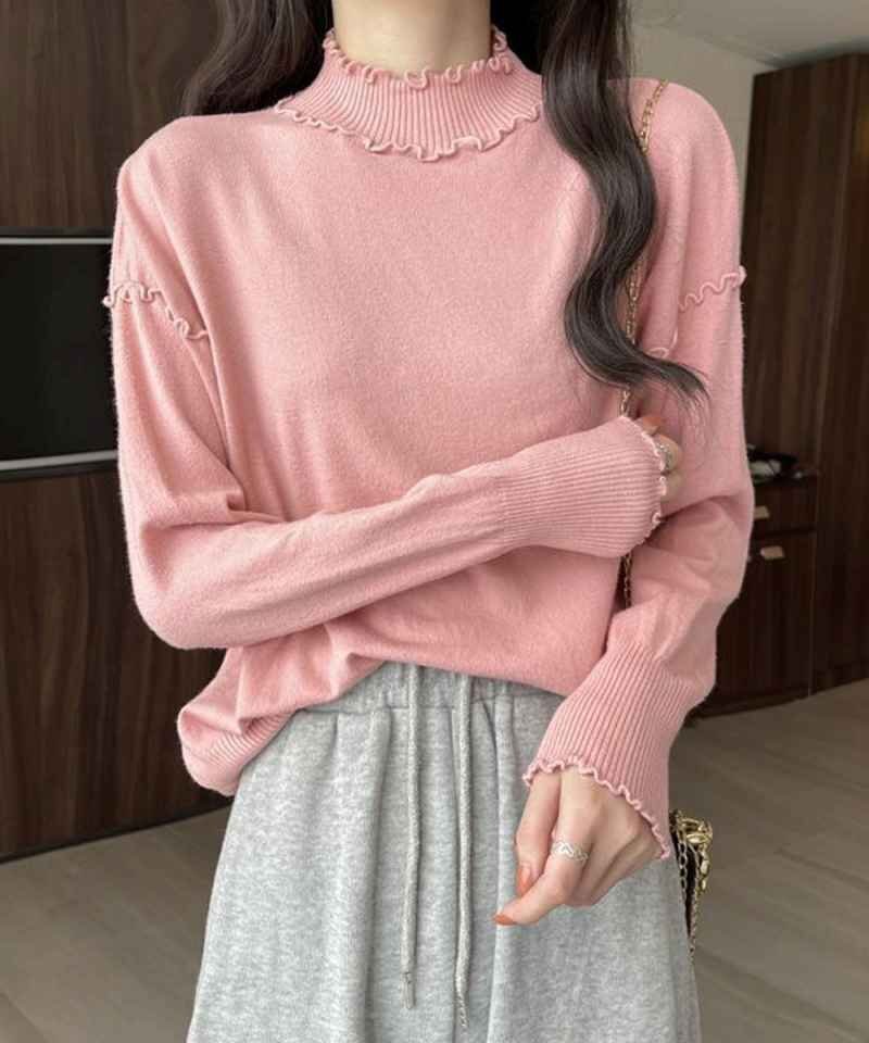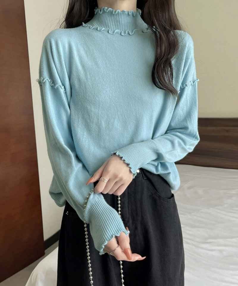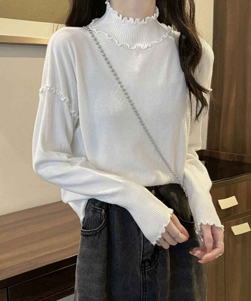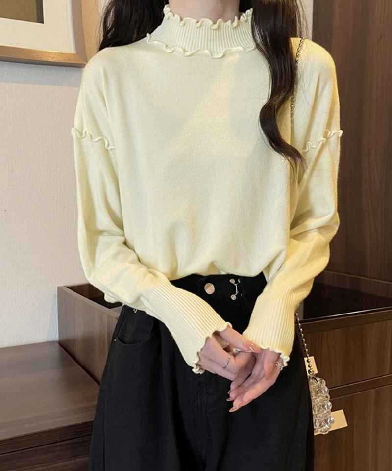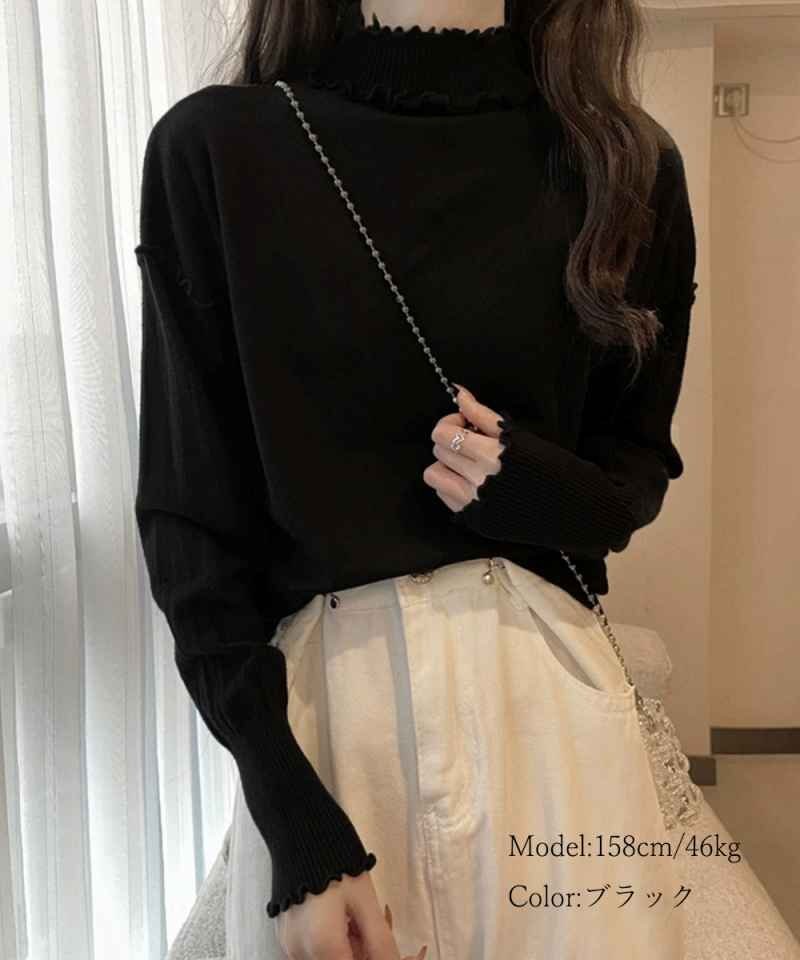 秋冬コーデを華やかに仕上げる大人フェミニンなリブニットトップスです。