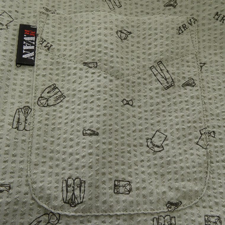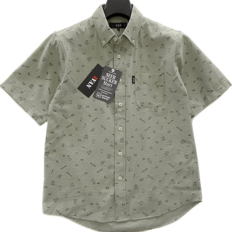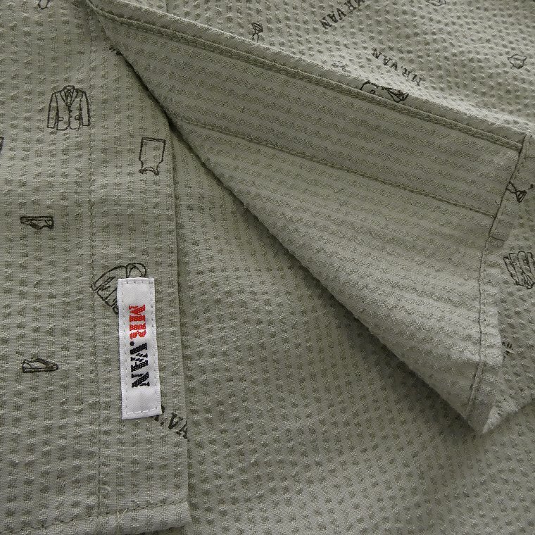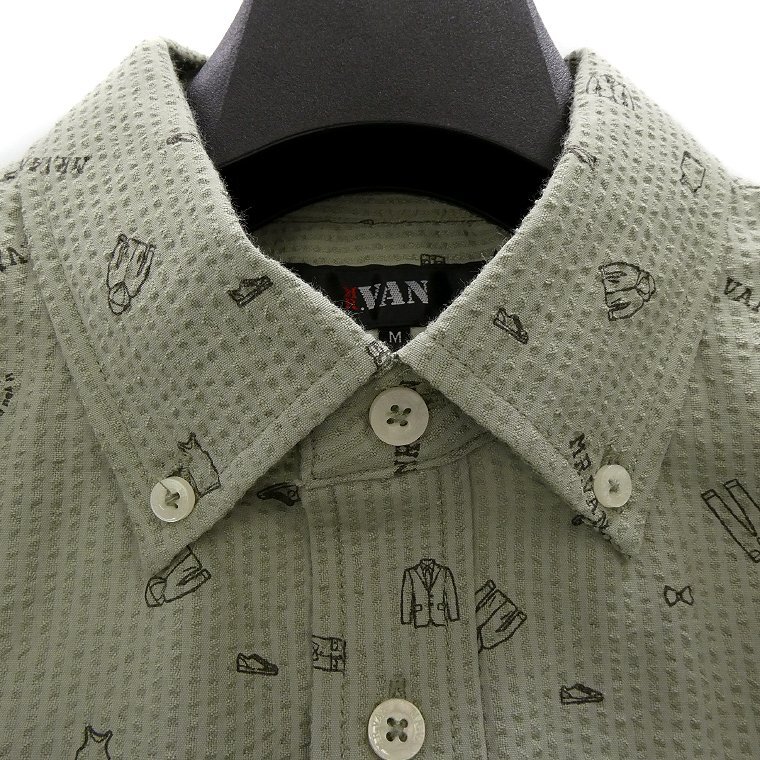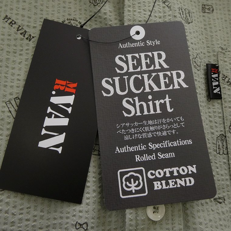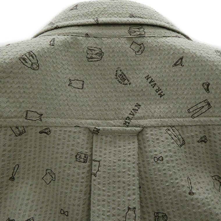 ・オリジナルロゴを含む複数の絵柄がプリントされたポップなデザイン。MR.VANらしい遊び心あるシャツに仕上がっております。 ・汗をかいてもベタつきにくく肌触りがサラっとして涼し気な質感のシアサッカー生地を使用。 ・開襟しても襟立ちが良いボタンダウンカラー、センターボックスプリーツ、左胸ポケットあり仕様です。 |
