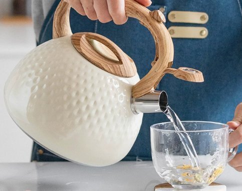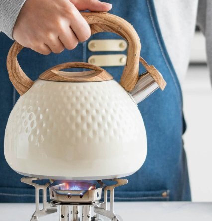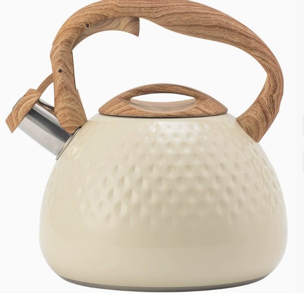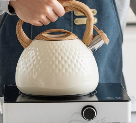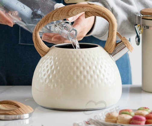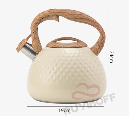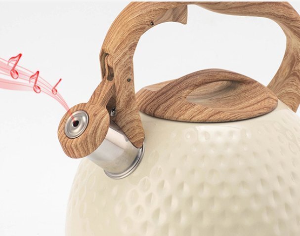 やかん 3L 笛吹きケトル ステンレス製 広口 木目調ハンドル タッチボタン 簡単開閉 大容量 IH対応 ガス対応 かわいい ベージュ